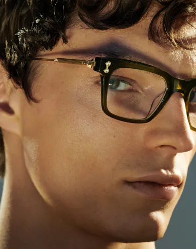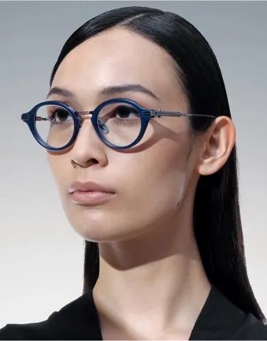 Next, it's worth looking at the Camera, which captivates imagination with its smooth and elegant round design. In this model, the frame is also acetate, but somewhat thicker, creating a more impactful impression. Being so daring in its shape, these eyeglasses are nevertheless very airy and playful, and they will definitely make a stylish addition to your everyday style, while also fit to wear on special occasions. With their deep, warm hues, they evoke associations with high-tech telescopes installed on space stations and the dynamic energy of light waves.