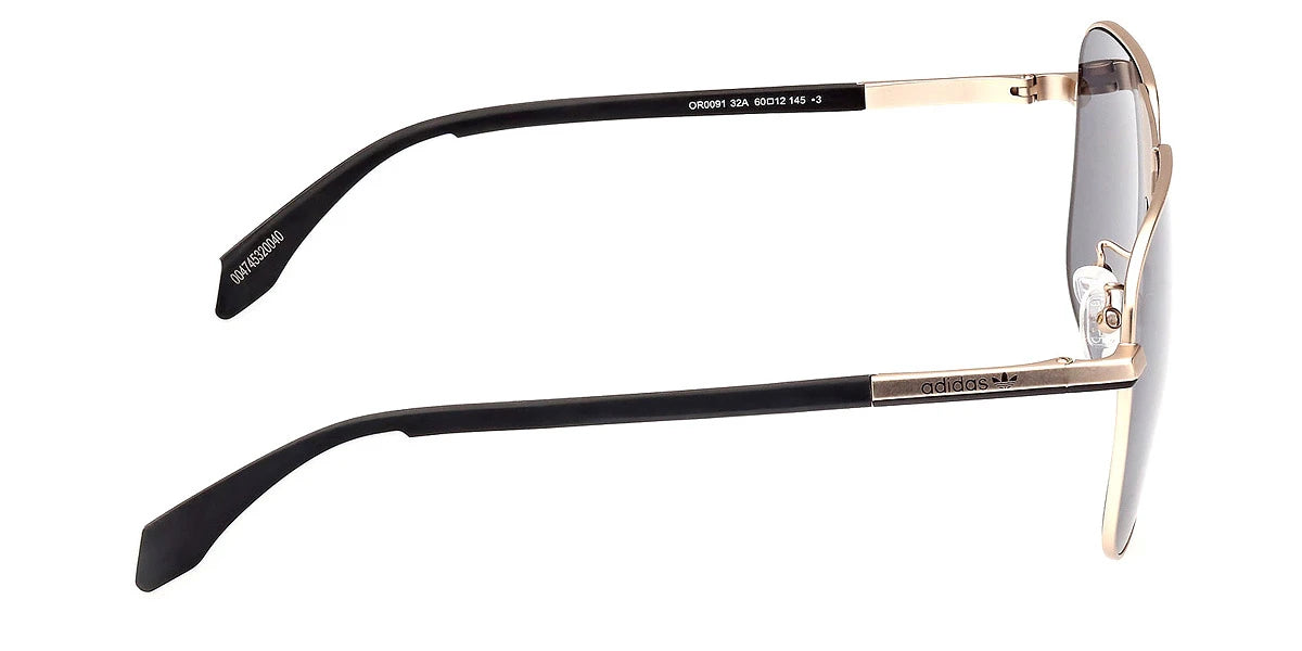 Gold (32A) Sunglasses with Smoke lenses (OR0091 32A 60) by Adidas™. Size: 60-12-145, Shape: Geometric, Material: Metal.