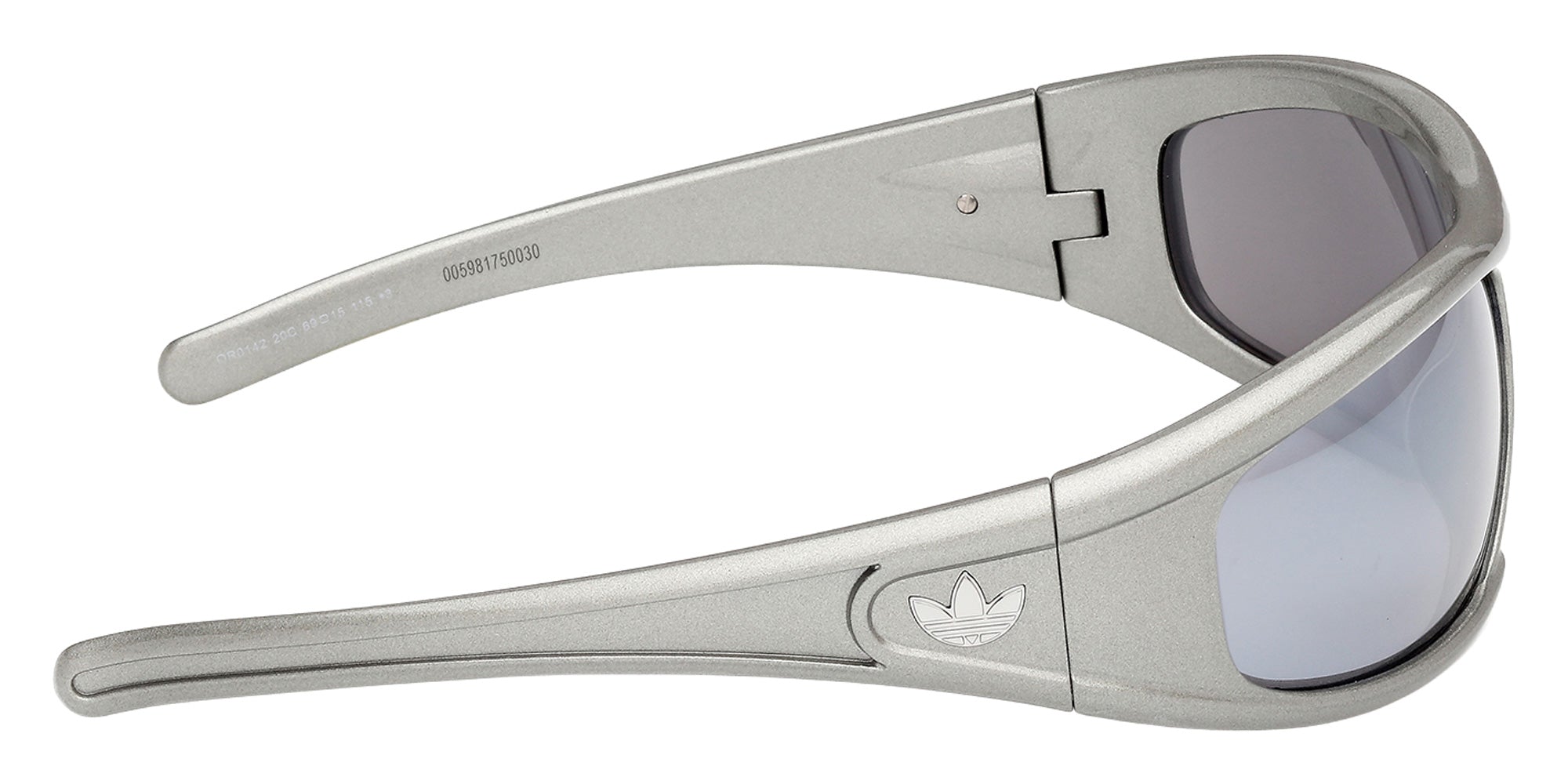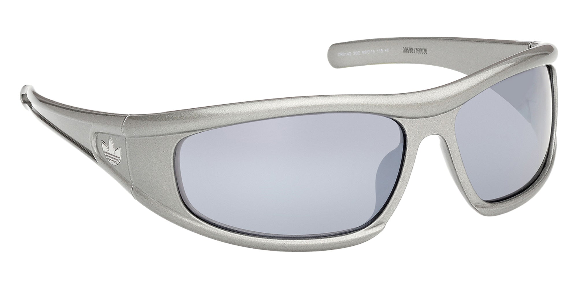 Shiny Gray (20C) Sunglasses with Smoke Mirrored lenses (OR0142 20C 69) by Adidas. Size: 69-15-115, Shape: Oval, Material: Injected.