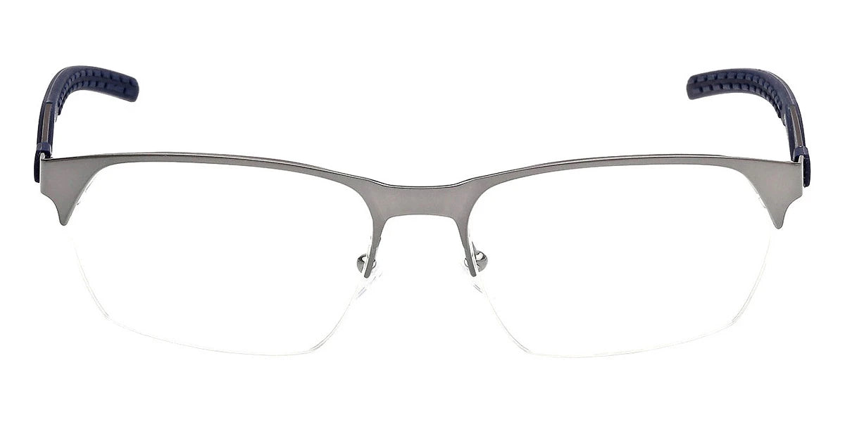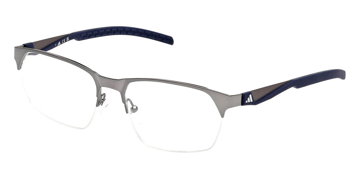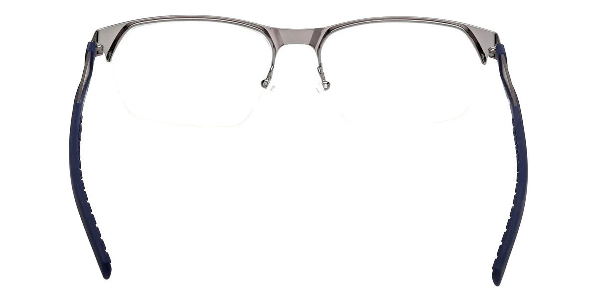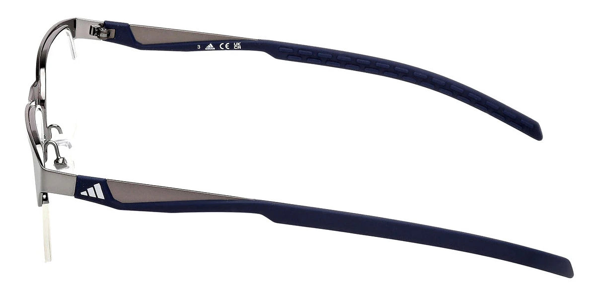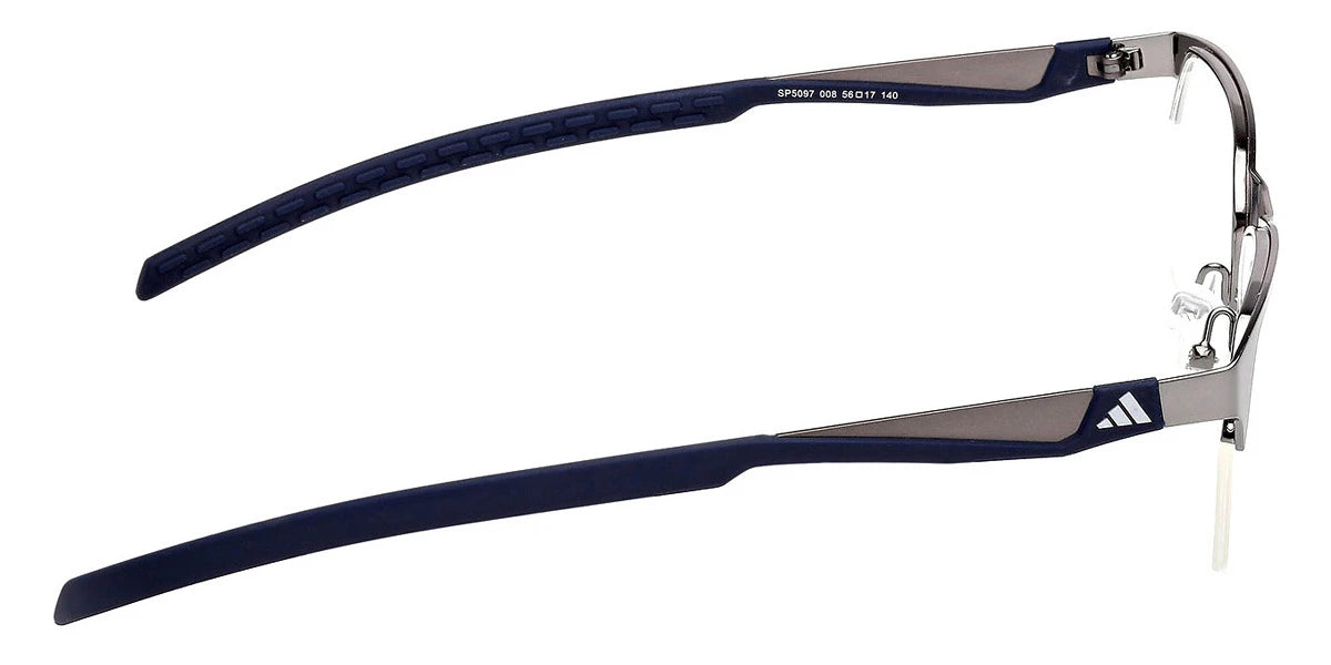 Shiny Gunmetal/Matte Blue (002) Eyeglasses (SP5097 002 56) by Adidas™. Size: 56-17-140, Shape: Browline, Material: Metal.
