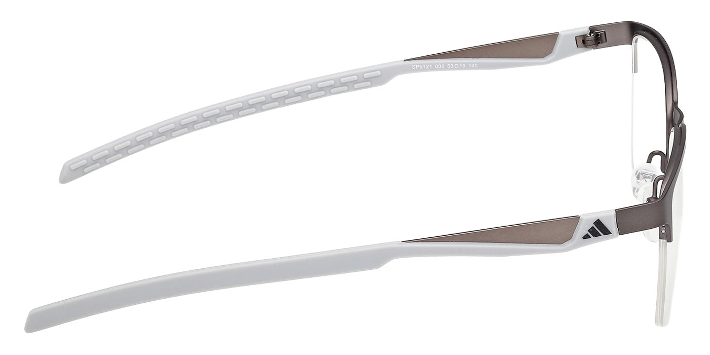 Matte Gunmetal (009) Eyeglasses (SP5121 009 53) by Adidas. Size: 53-19-140, Shape: Browline, Material: Metal.