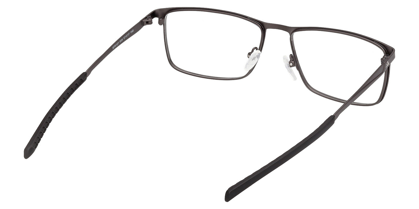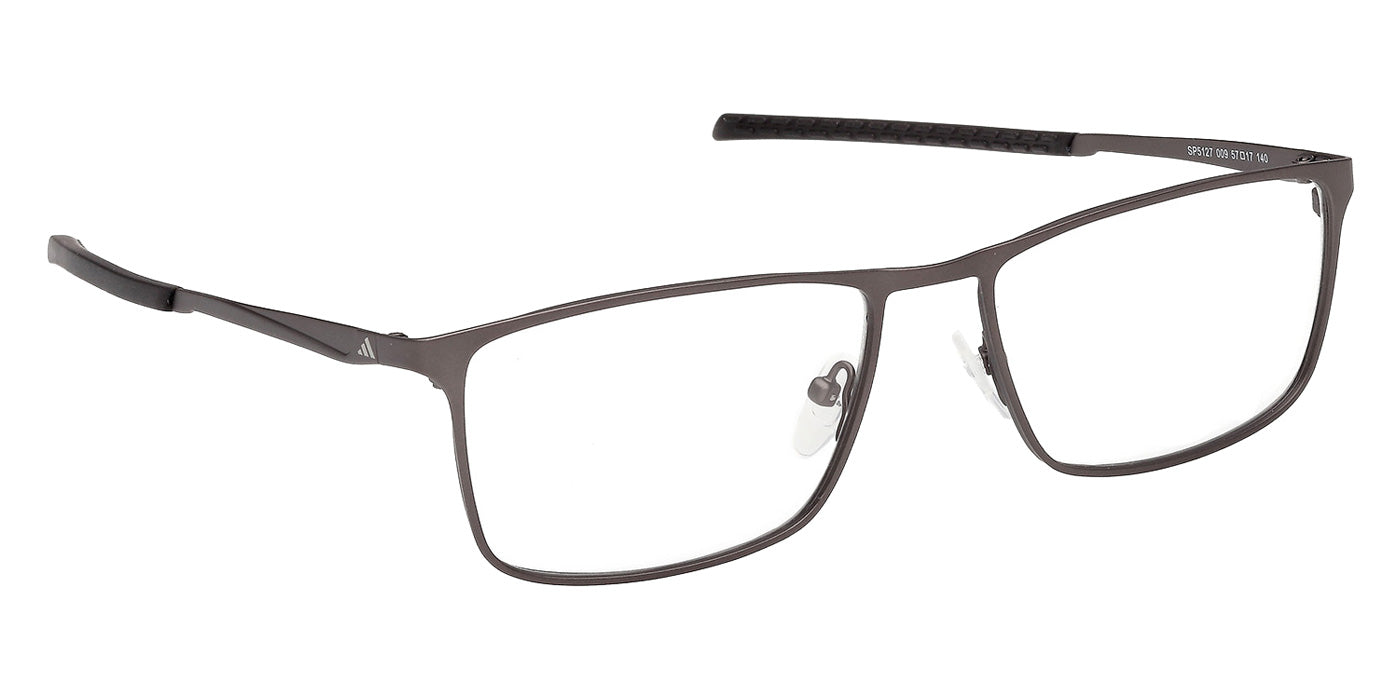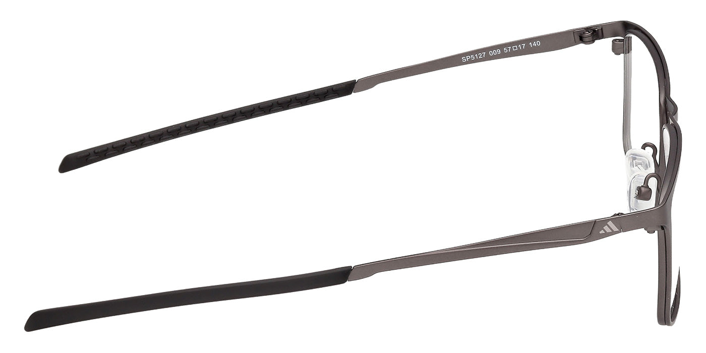 Matte Gunmetal (009) Eyeglasses (SP5127 009 57) by Adidas. Size: 57-17-140, Shape: Rectangle, Material: Metal.