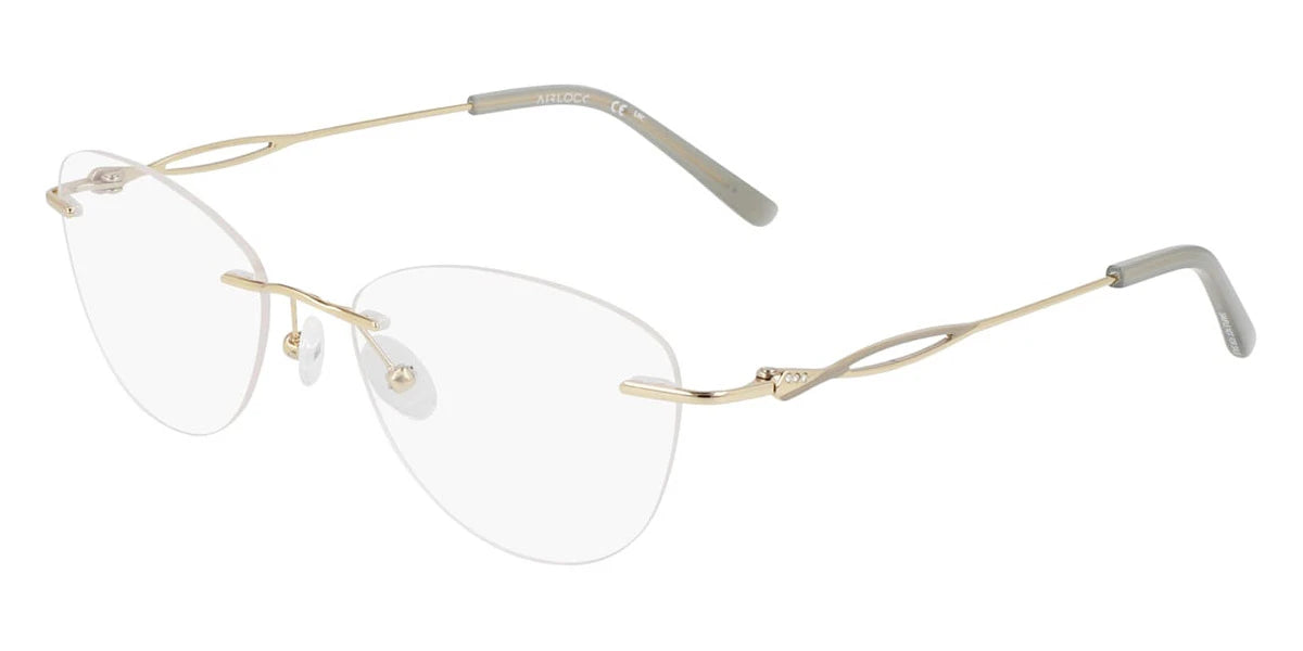 Gold (713) Eyeglasses (SKYE 200 713 53) by Airlock™. Size: 53-18-145, Shape: Cat-Eye, Material: Titanium.