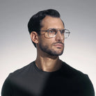 Calisto Eyeglasses by Akoni™. The aviator shape design feature a full rim titanium frame. This model is available in three different color combinations and sizes. This eyewear model embodies a sense of youthful energy and creativity. With its clean lines and sleek profile, Calisto is a modern choice for those who appreciate simplicity with a contemporary twist. The design showcases a harmonious balance between form and function, ensuring a comfortable and secure fit. It's a versatile accessory that can easily adapt to your unique style, whether you're dressing up for a special occasion or going for a relaxed, everyday look. With this eyewear model, you can make a subtle fashion statement that speaks volumes about your personal taste.