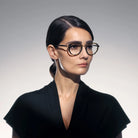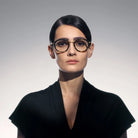 Camera AF Eyeglasses by Akoni™. The round shape design feature a full rim acetate and titanium frame. This model is available in three different color combinations and sizes. Effortless chic is the hallmark of the Camera eyewear model. It's designed for those who want to effortlessly elevate their style with a touch of understated glamour. This model's simple yet refined design allows it to seamlessly blend with a variety of fashion choices, making it a go-to accessory for those who value both fashion and ease.