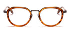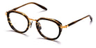Dark Tortoise/Brushed Gold (409B) Eyeglasses (AKX-409B-49-AF) by Akoni™. Size: 49-19-142, Shape: Round, Material: Acetate and Titanium.