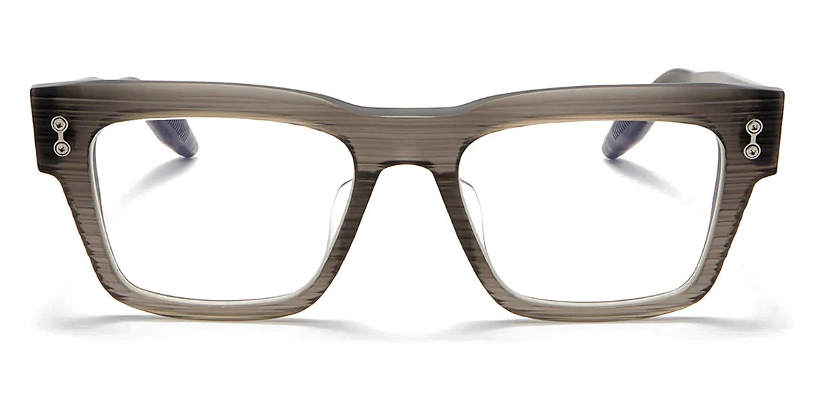 Crystal Dark Gray/Black Palladium (100F) Eyeglasses (Columba Rx 100F 54) by Akoni™. Size: 54-19-148, Shape: Square, Material: Acetate.