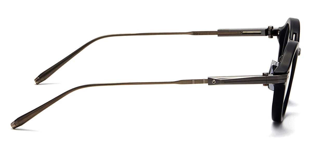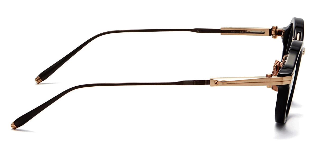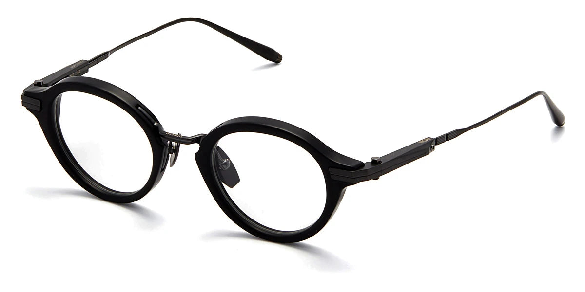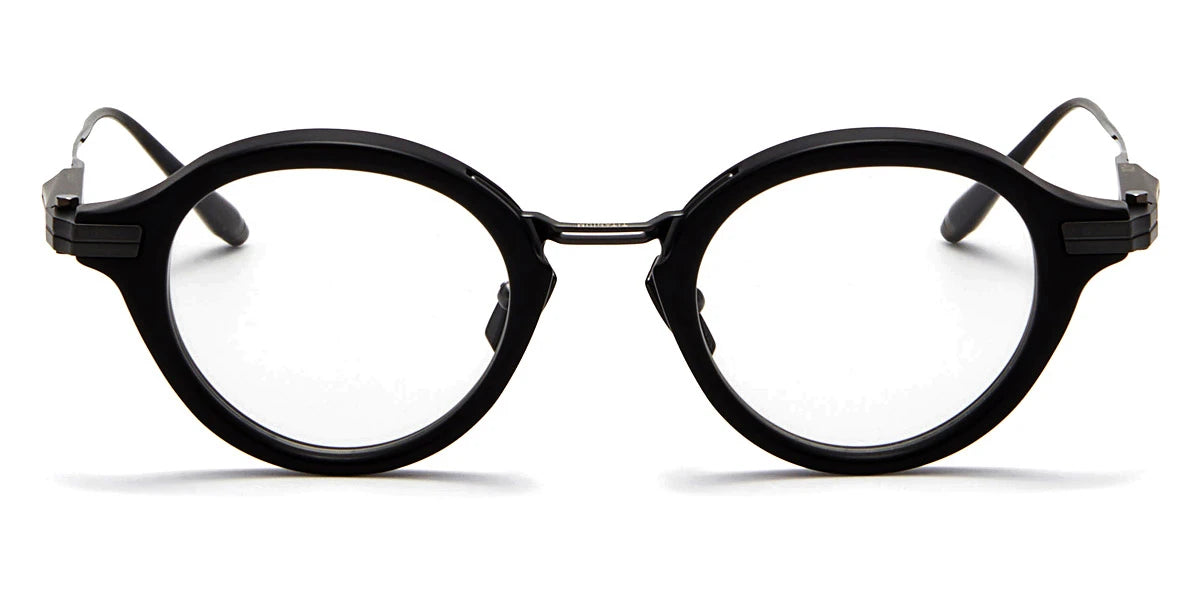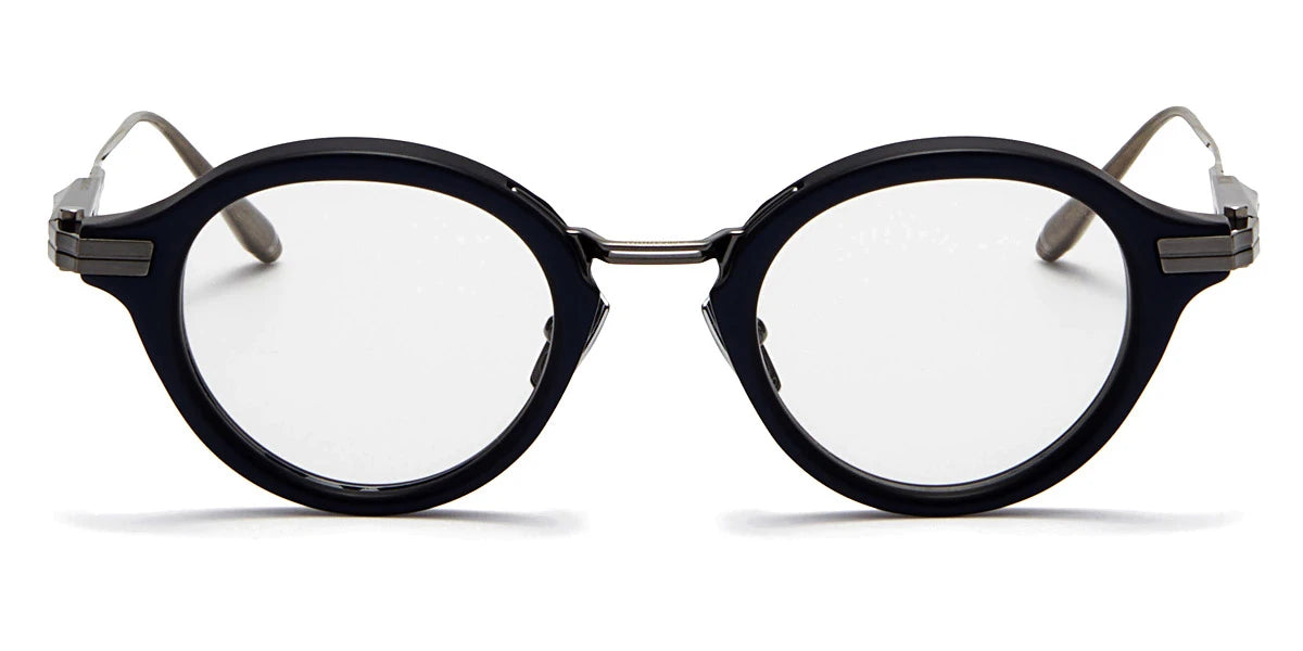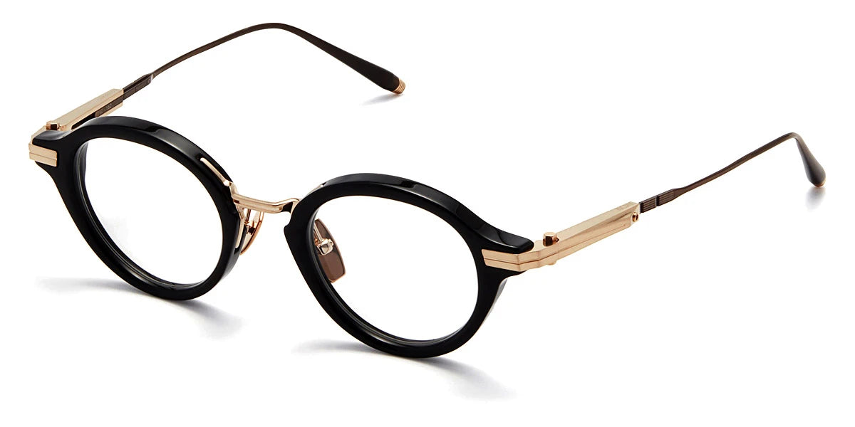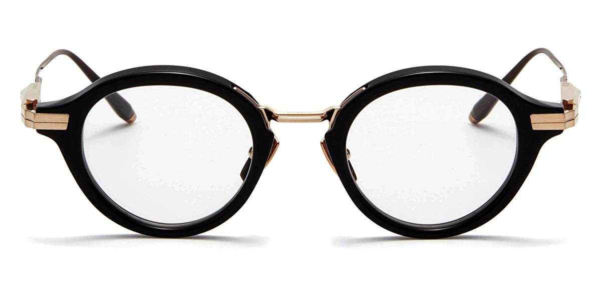 Black/Brushed White Gold (415A) Eyeglasses (AKX-415A-45) by Akoni™. Size: 45-23-152, Shape: Round, Material: Acetate and Titanium.