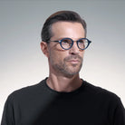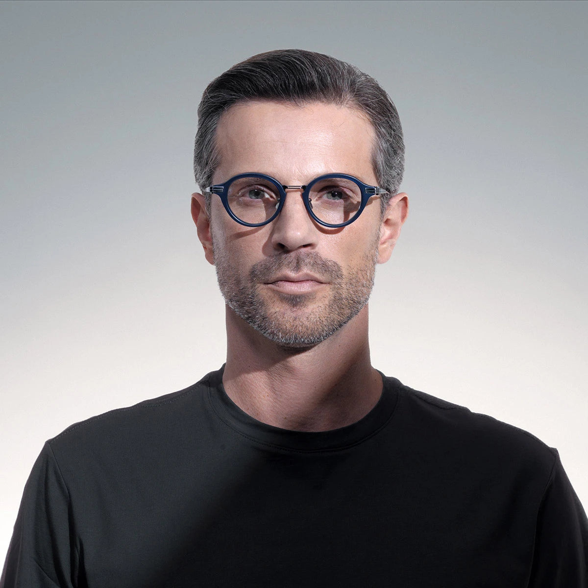 Copernico Eyeglasses by Akoni™. The round shape design feature a full rim acetate and titanium frame. This model is available in three different color combinations and sizes. Copernico is a testament to contemporary elegance, designed for the discerning individual who values both form and function. It showcases an innovative approach to eyewear design, incorporating advanced technology to ensure optimal visual performance and comfort. The frame is engineered to adapt to various face shapes, offering a personalized fit that enhances wearability. The design exudes a subtle luxury, with refined details that speak to the brand's craftsmanship. It's a versatile accessory, suitable for both professional settings and casual outings.