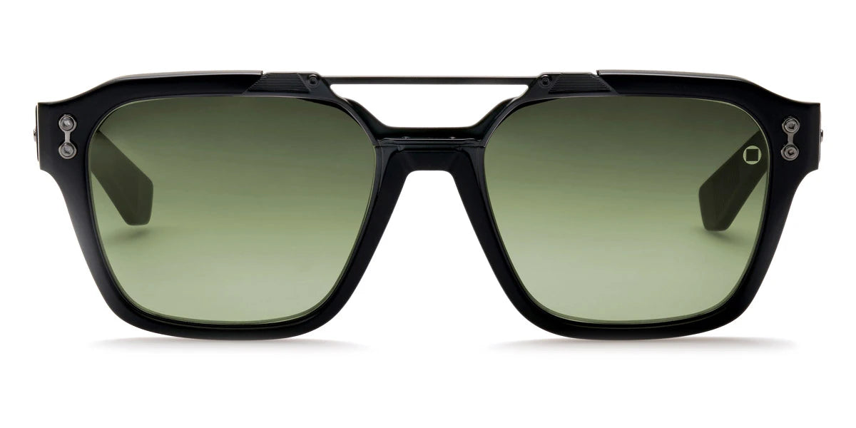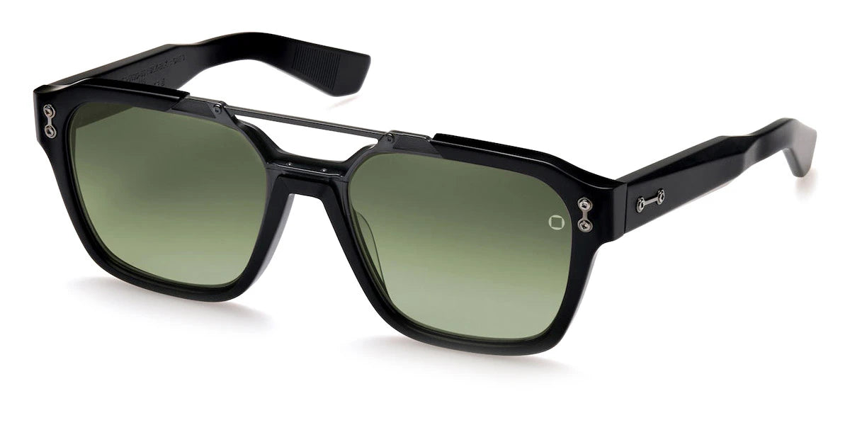 Black/Black Rhodium (509D) Sunglasses with Deep Emerald Green lenses (Discovery 509D 55) by Akoni™. Size: 55-19-145, Shape: Aviator, Material: Acetate and Titanium.