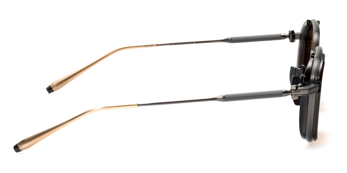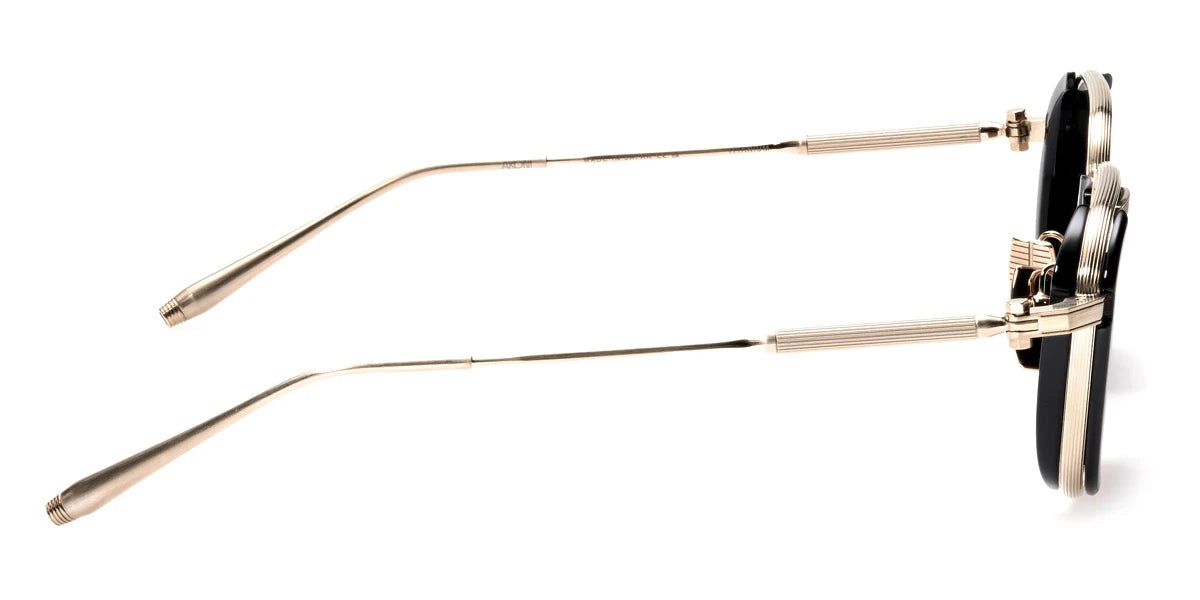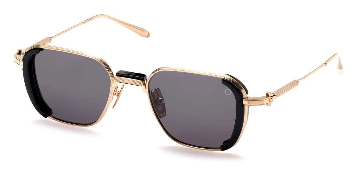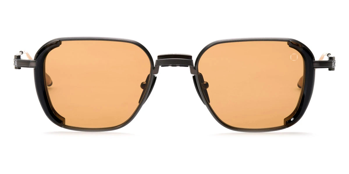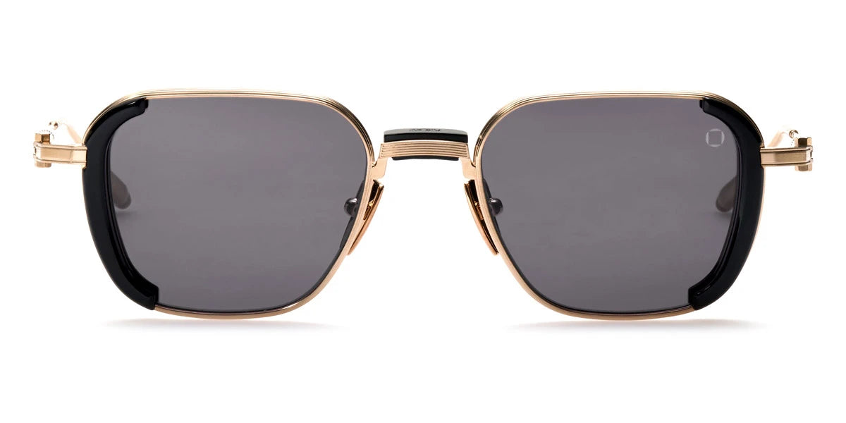 Crystal Black/Brushed Black with Brushed 12k Gold (513B) Sunglasses with High Contrast Senape lenses (Eclipse 513B 49) by Akoni™. Size: 49-20-140, Shape: Square, Material: Acetate and Titanium.