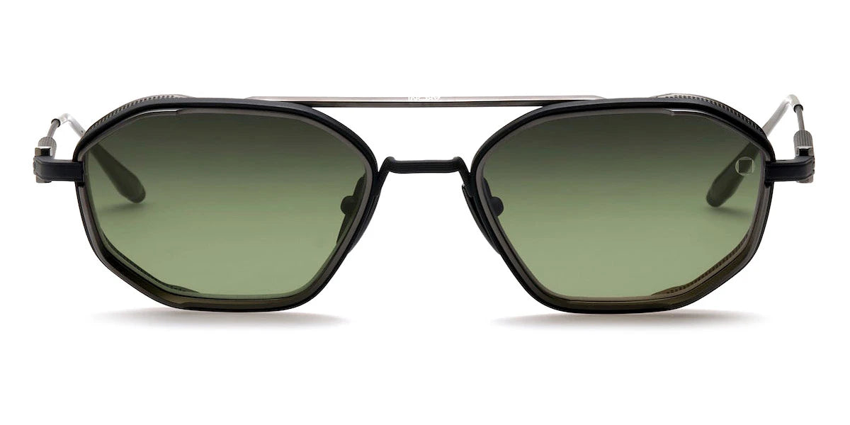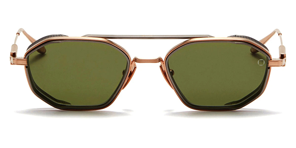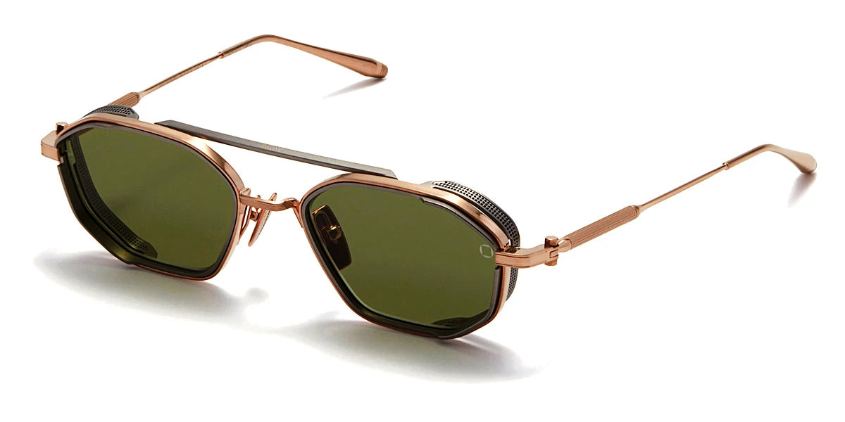 Brushed White Gold/Matte Black Palladium (508A) Sunglasses with Dark Olive AR lenses (Eris Two 508A 51) by Akoni™. Size: 51-19-140, Shape: Rectangle, Material: Titanium.