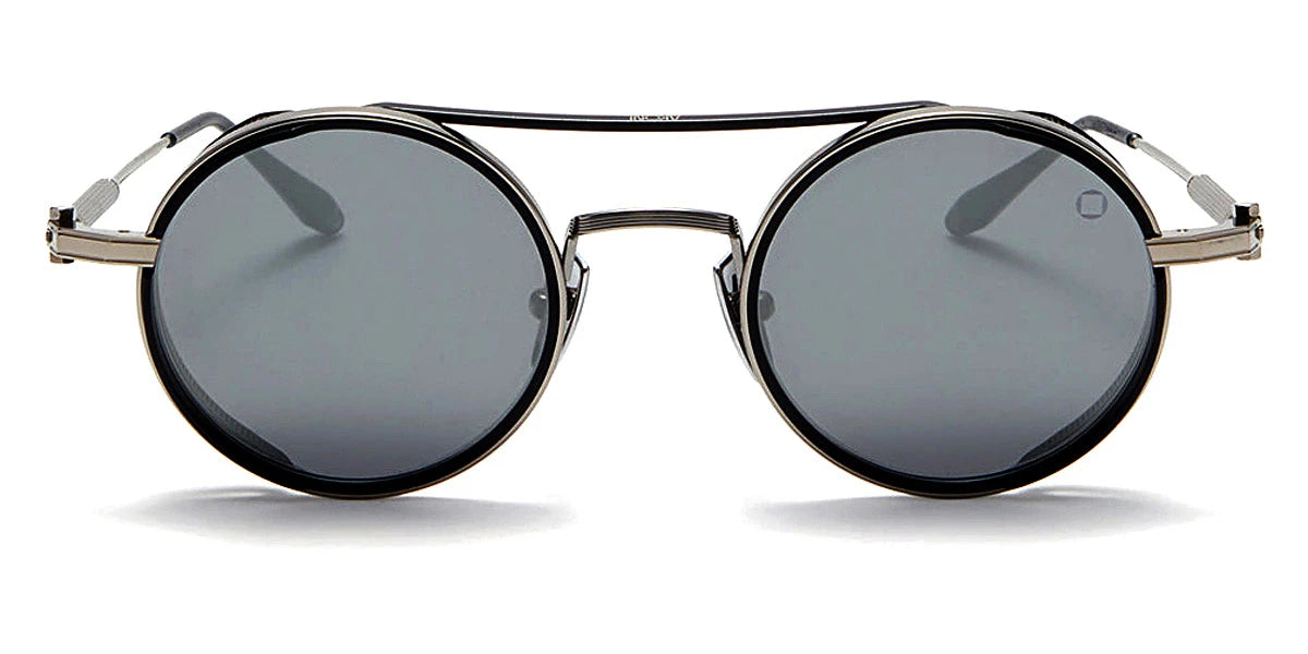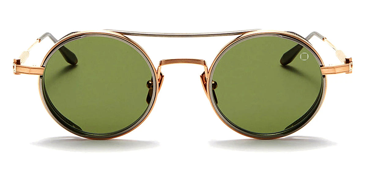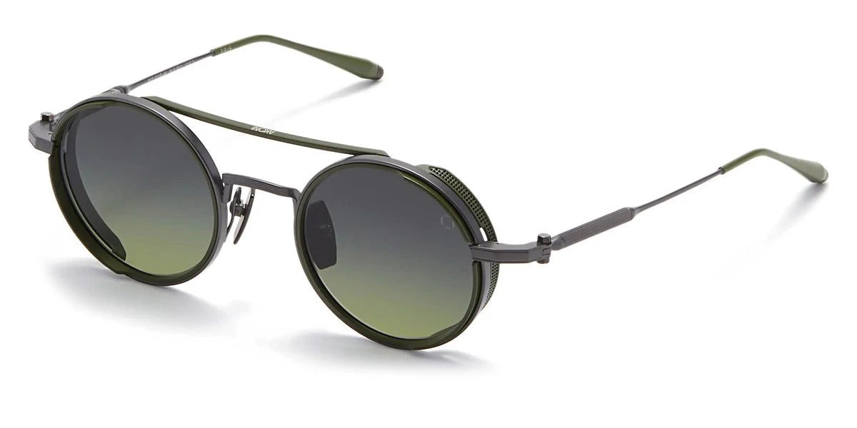 Brushed White Gold/Matte Black Palladium (505A) Sunglasses with Dark Olive AR lenses (Eris 505A 46) by Akoni™. Size: 46-22-140, Shape: Round, Material: Titanium.