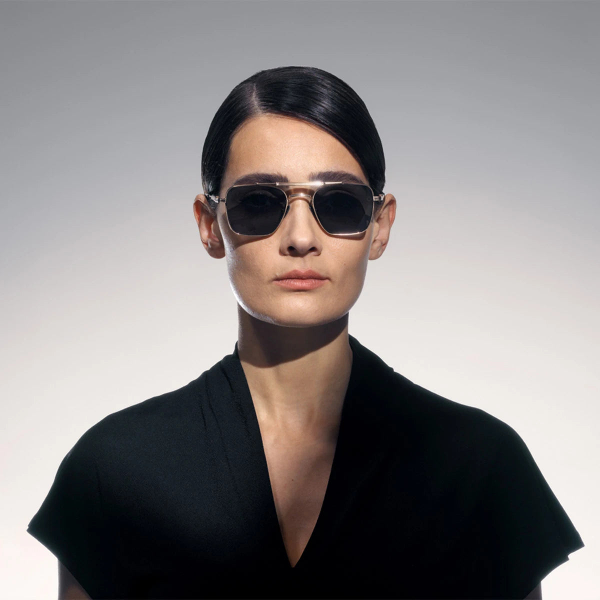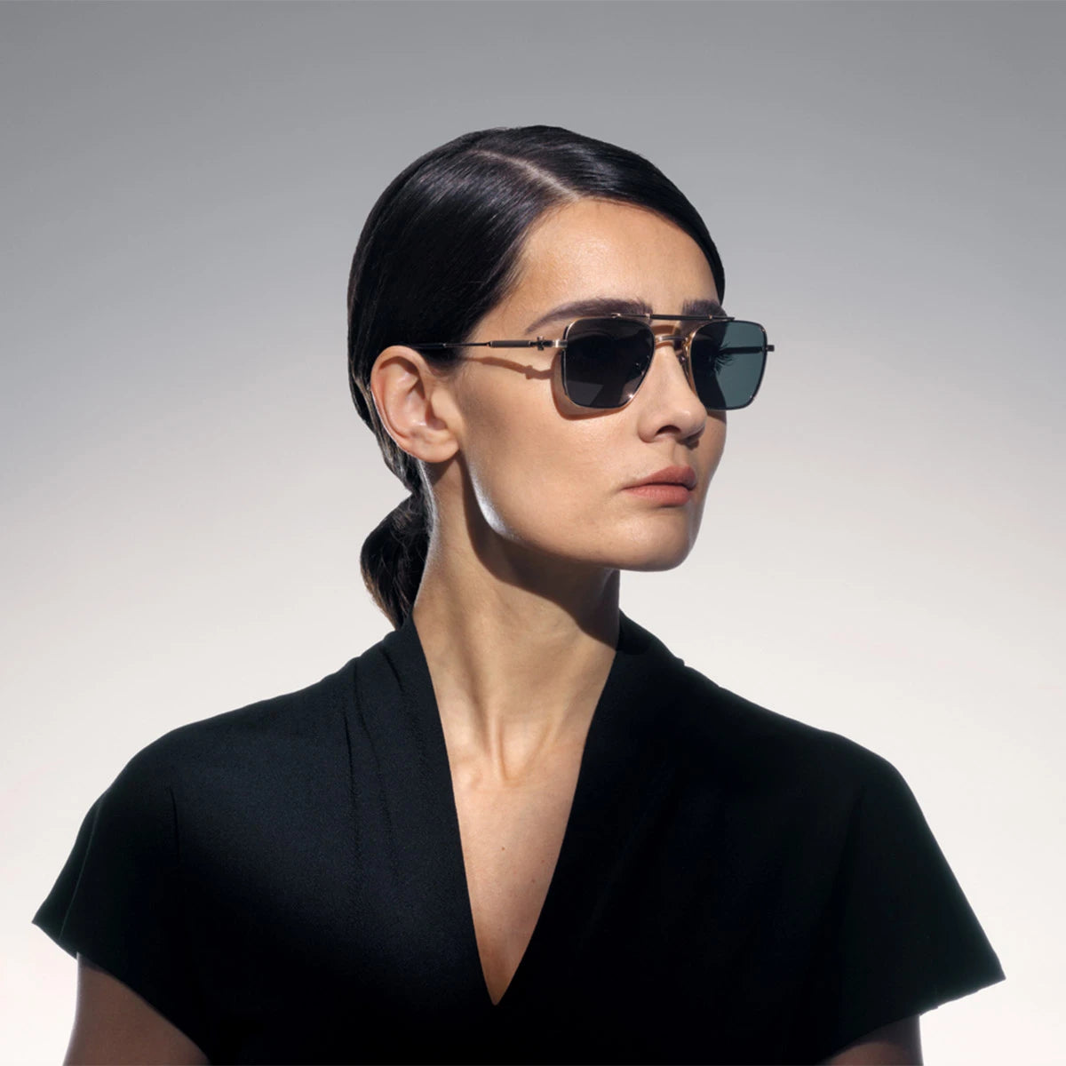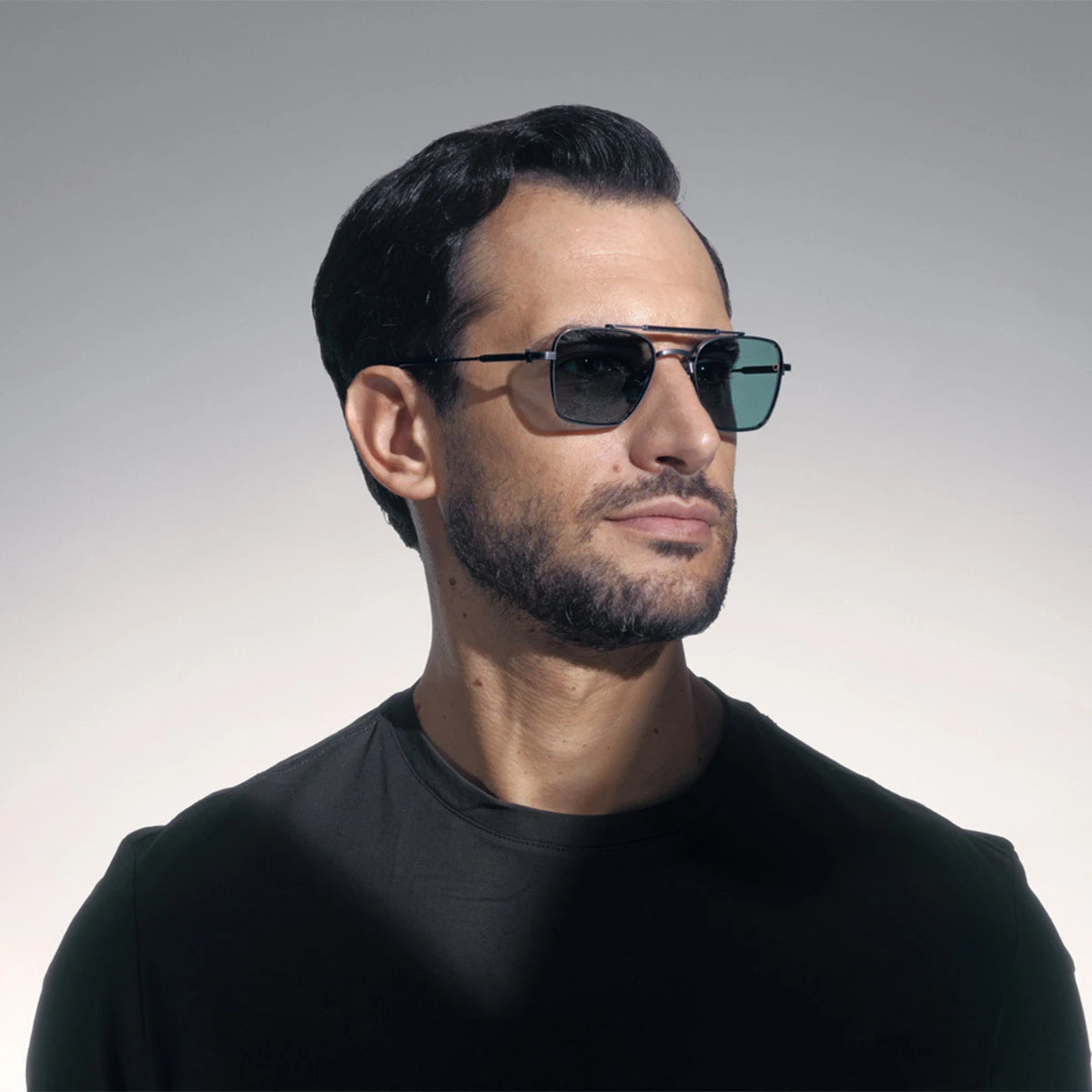 Europa Sunglasses by Akoni™. The aviator shape design feature a full rim titanium frame. This model is available in four different color combinations and sizes. Expertly balancing eye protection, enduring style, and premium comfort, this contemporary sunglass frame features a universally flattering silhouette. Meticulously crafted from featherweight durable materials, it incorporates advanced technologies to filter harsh light while retaining natural color integrity. Thoughtfully designed features deliver a sublime vision experience and exceptionally secure, customizable fit.