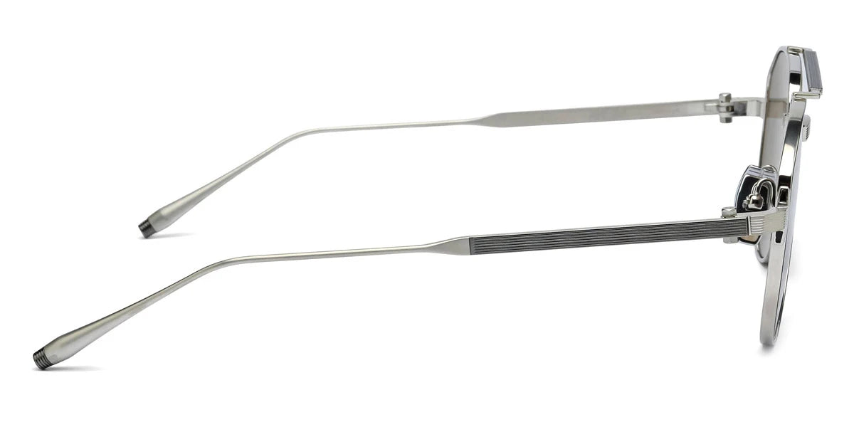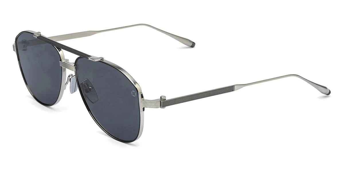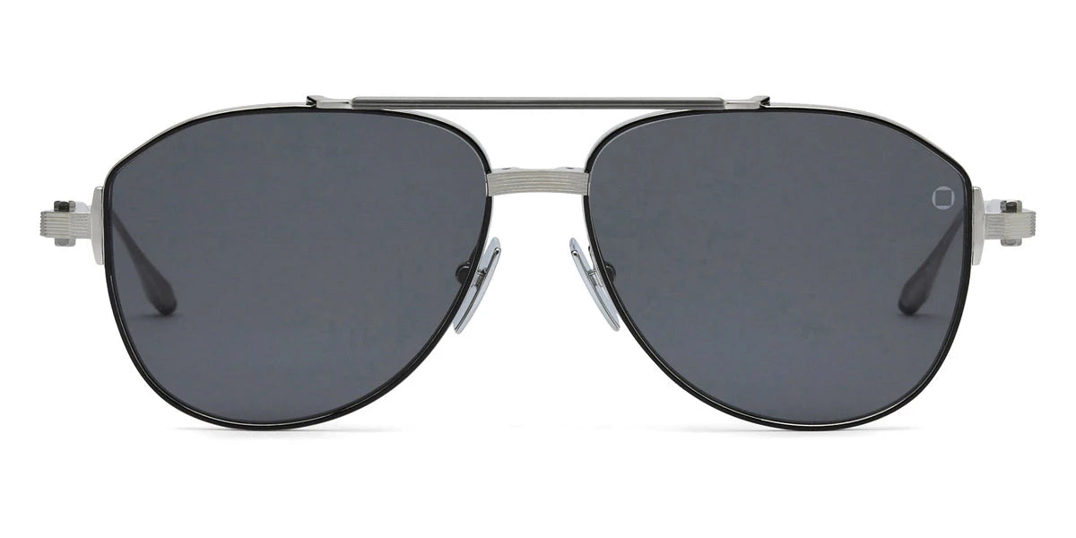 Brushed Silver/Black Rhodium/Black Enamel (521C) Sunglasses with Senape AR lenses (Helios 521C 57) by Akoni™. Size: 57-14-145, Shape: Aviator, Material: Titanium.