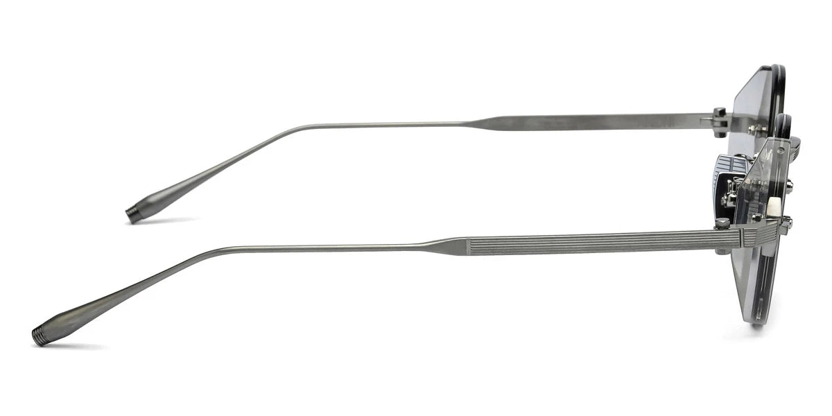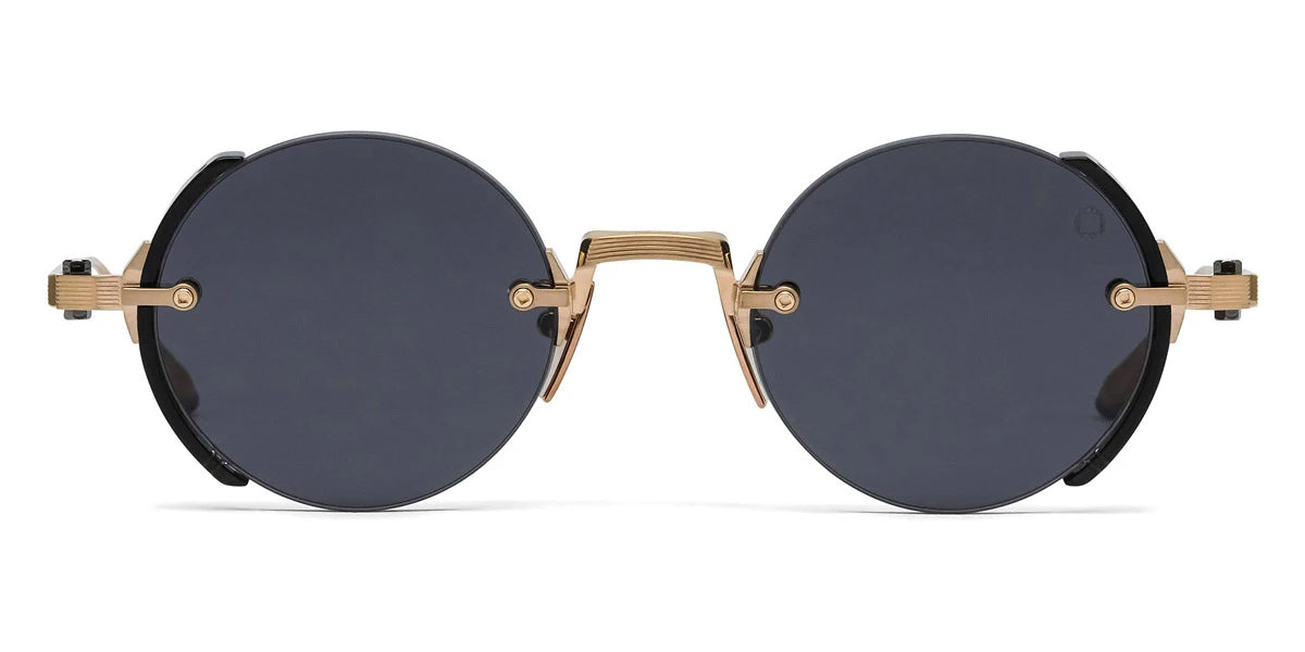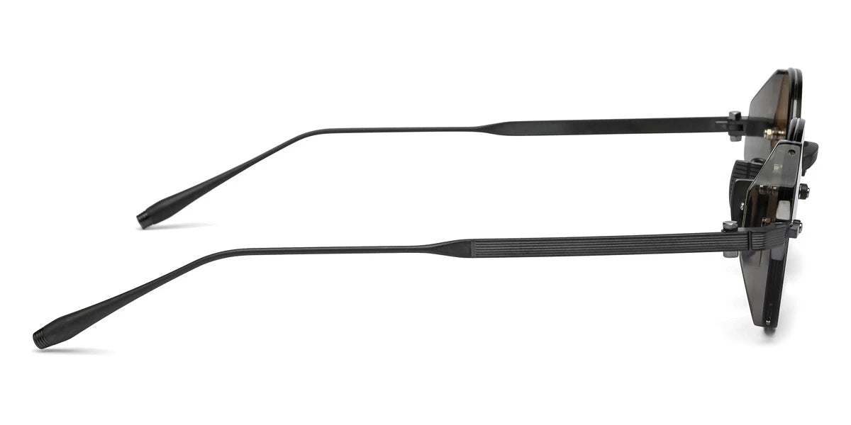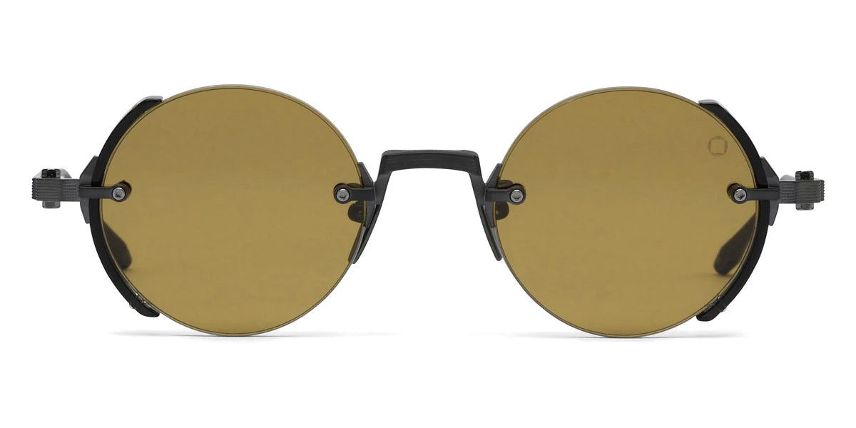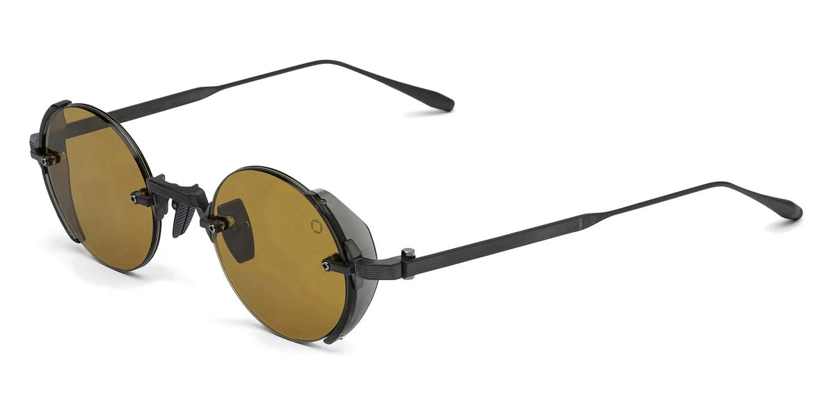 Brushed Black Palladium/Crystal Gray Acetate Sideshield (519B) Sunglasses with Dark Gray to Olive AR lenses (Jupiter 519B 46) by Akoni™. Size: 46-22-145, Shape: Round, Material: Titanium.
