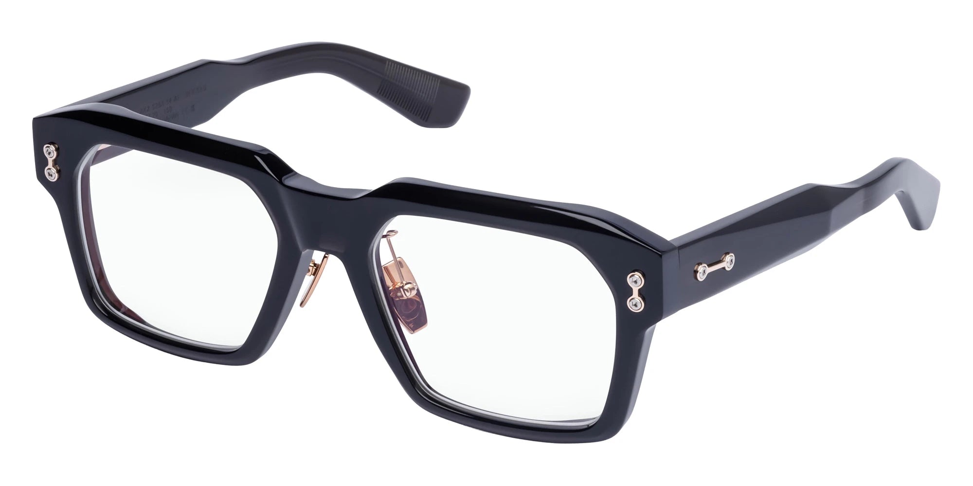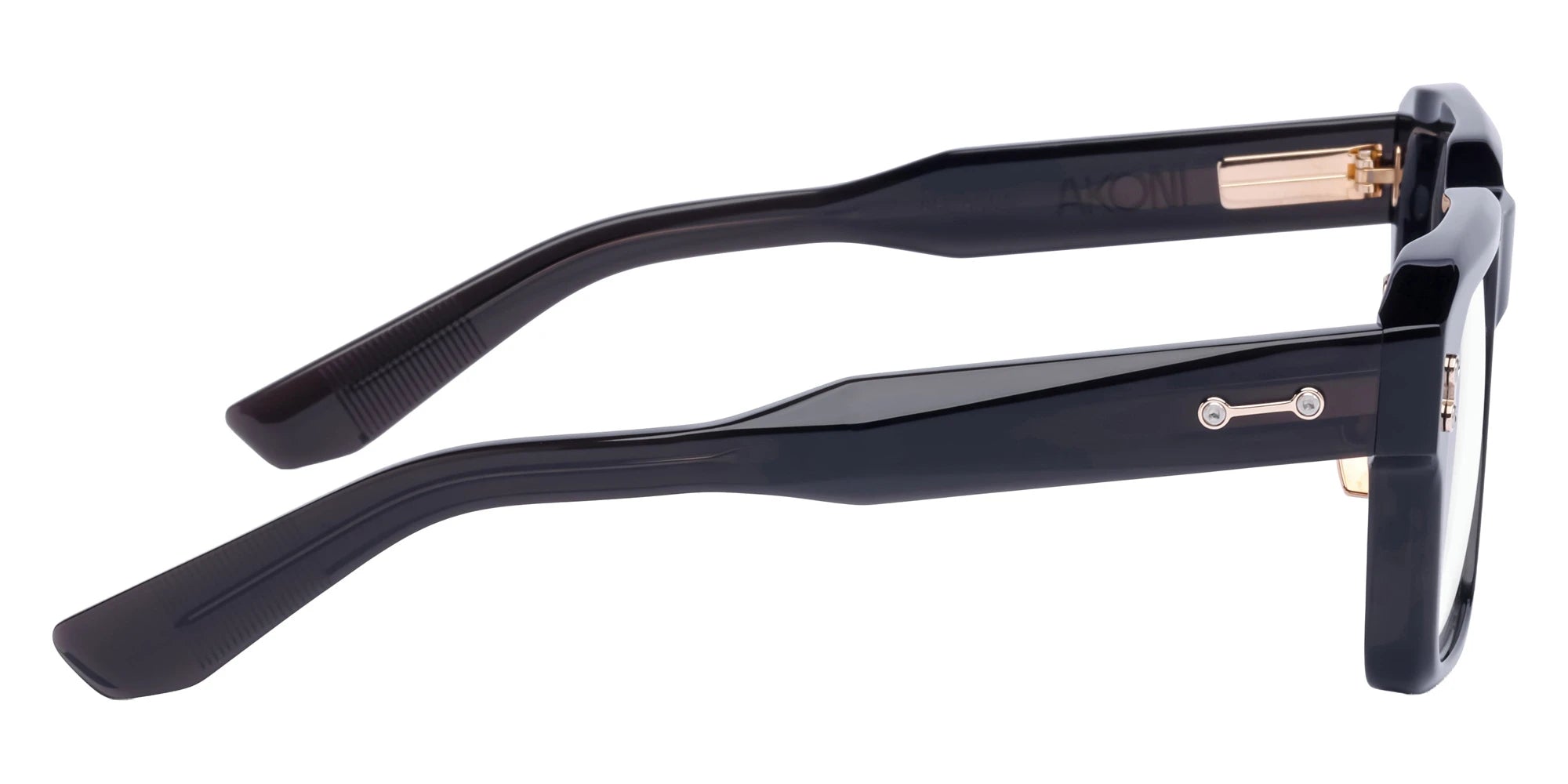 Crystal Black/12k Gold (528A) Eyeglasses (Pegasus AF 528A 54) by Akoni™. Size: 54-20-150, Shape: Square, Material: Acetate.