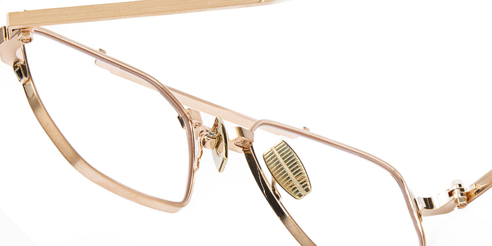 Brushed 12k Gold/Deep Emerald Green enamel (539B) Eyeglasses (Proteus Rx 539B 52) by Akoni. Size: 52-19-145, Shape: Aviator, Material: Titanium.