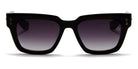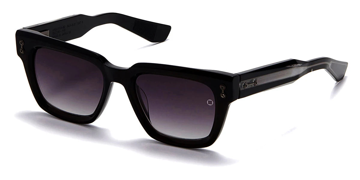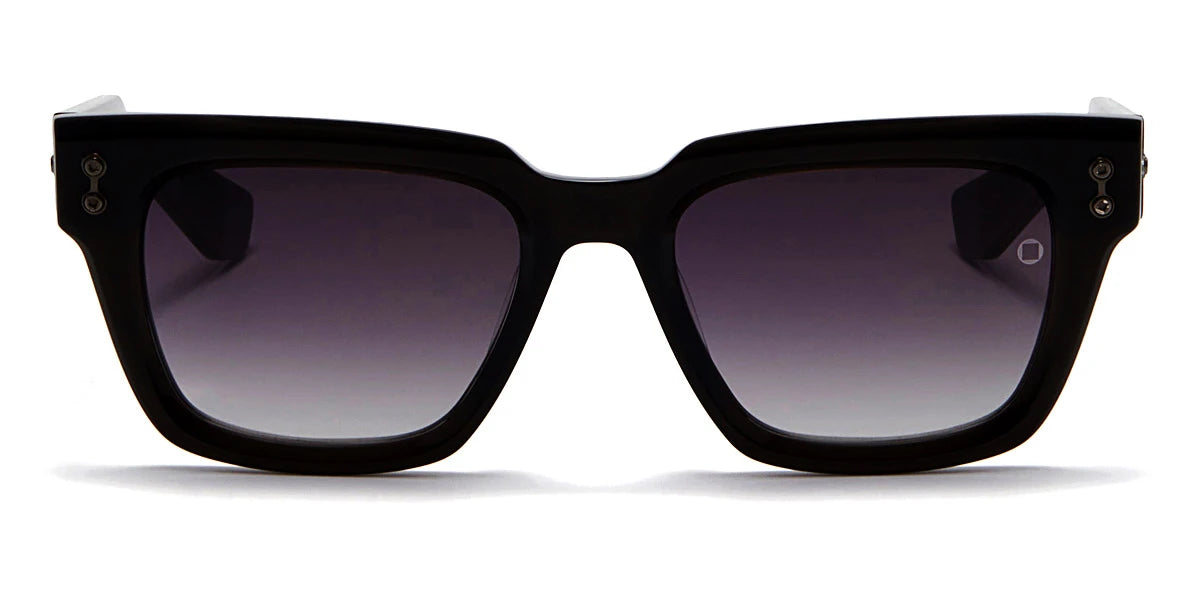 Crystal Black/Black Rhodium (111A) Sunglasses with Dark Gray to Light Gray/Black Flash Mirrored AR lenses (Pyxis 111A 52) by Akoni™. Size: 52-20-145, Shape: Rectangle, Material: Acetate.