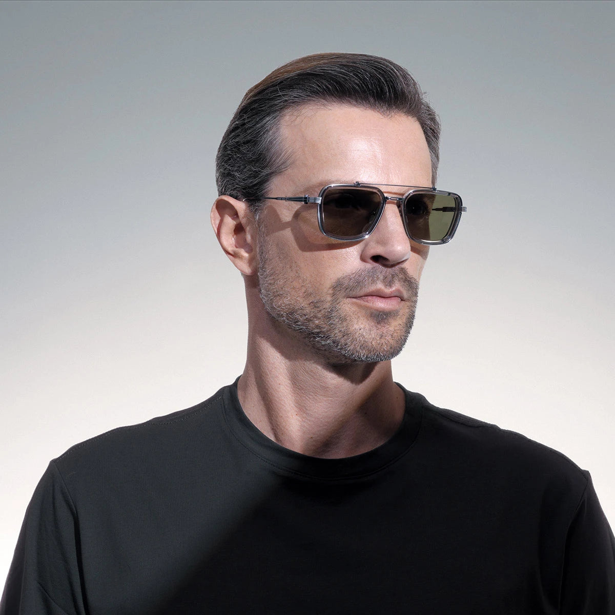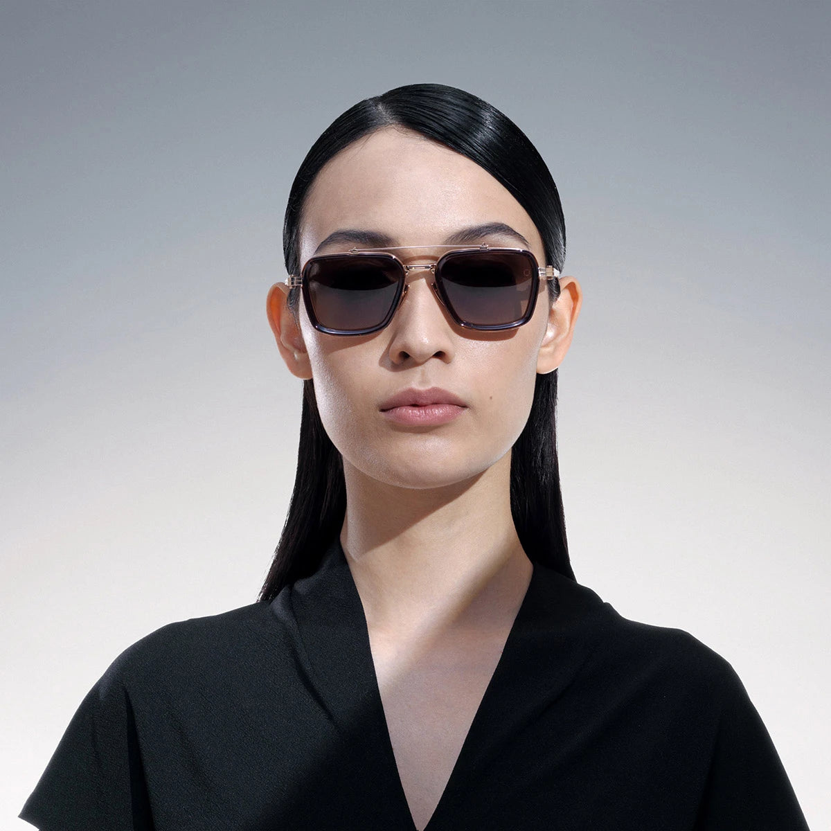 Solis Sunglasses by Akoni™. The aviator shape design feature a full rim acetate and titanium frame. This model is available in four different color combinations and sizes. Sleek modern lines meet time-honored craftsmanship traditions in this meticulously designed eyewear. Light-as-air materials and a slender profile keep the focus on you while also delivering peak performance vision. Custom-engineered features provide exceptional visual clarity and all-day wearability. Understated styling nods to the classics with a contemporary twist.