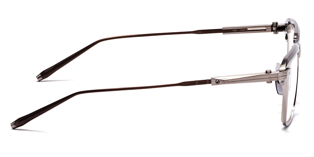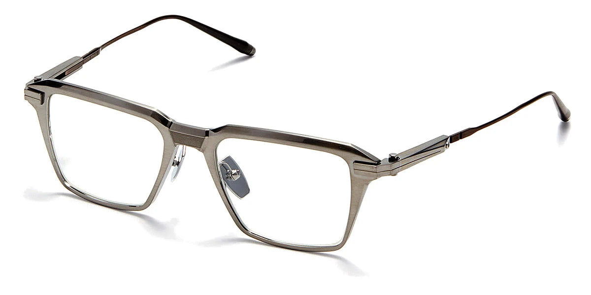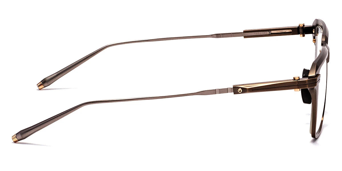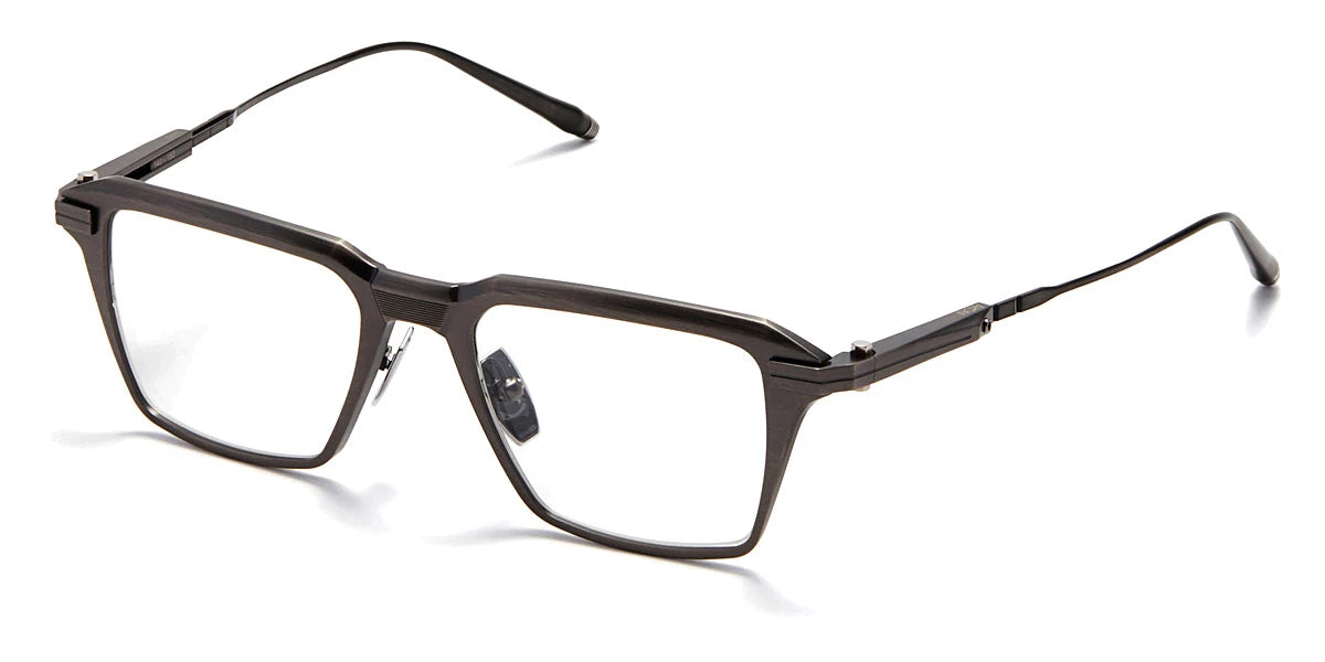 Antiqued White Gold/Black Palladium (502A) Eyeglasses (AKX-502A-50) by Akoni™. Size: 50-20-152, Shape: Rectangle, Material: Titanium.