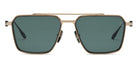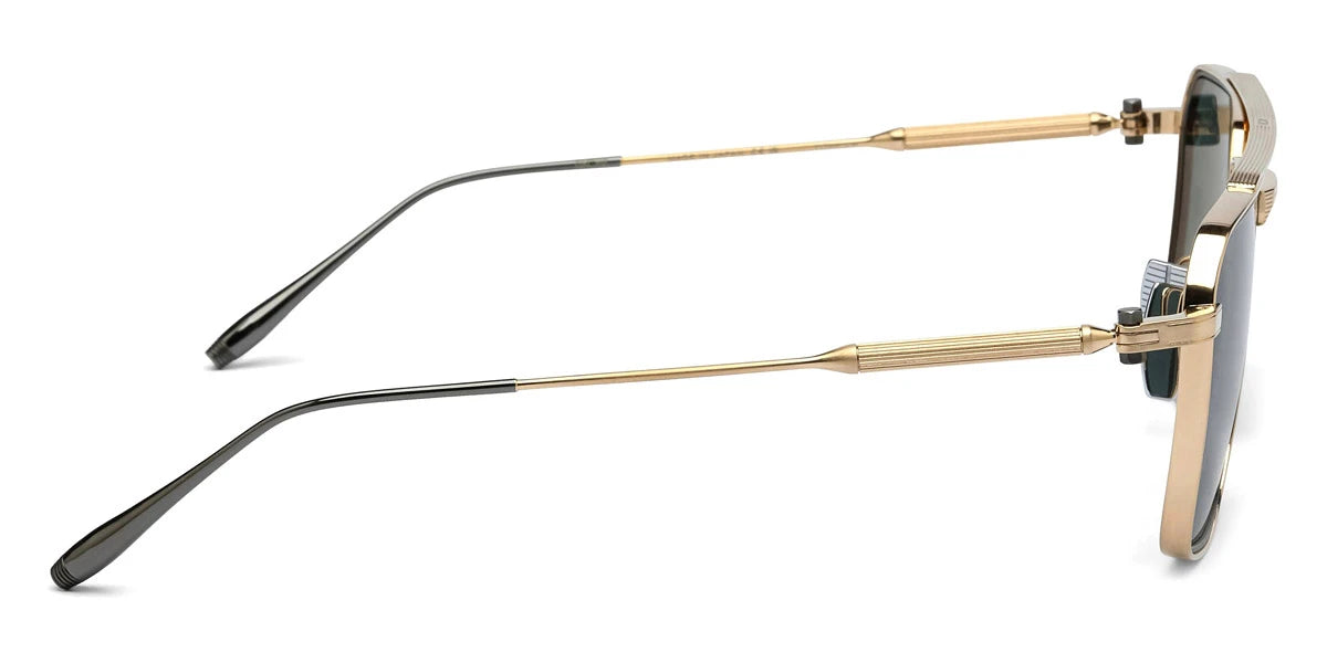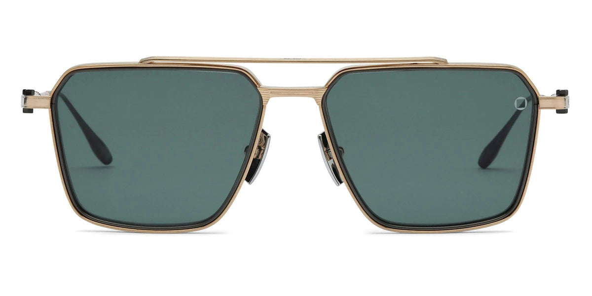 Brushed 12k Gold/Matte Black Palladium (523A) Sunglasses with Deep Emerald Green AR lenses (Telesto Sun 523A 53) by Akoni™. Size: 53-16-142, Shape: Aviator, Material: Titanium.