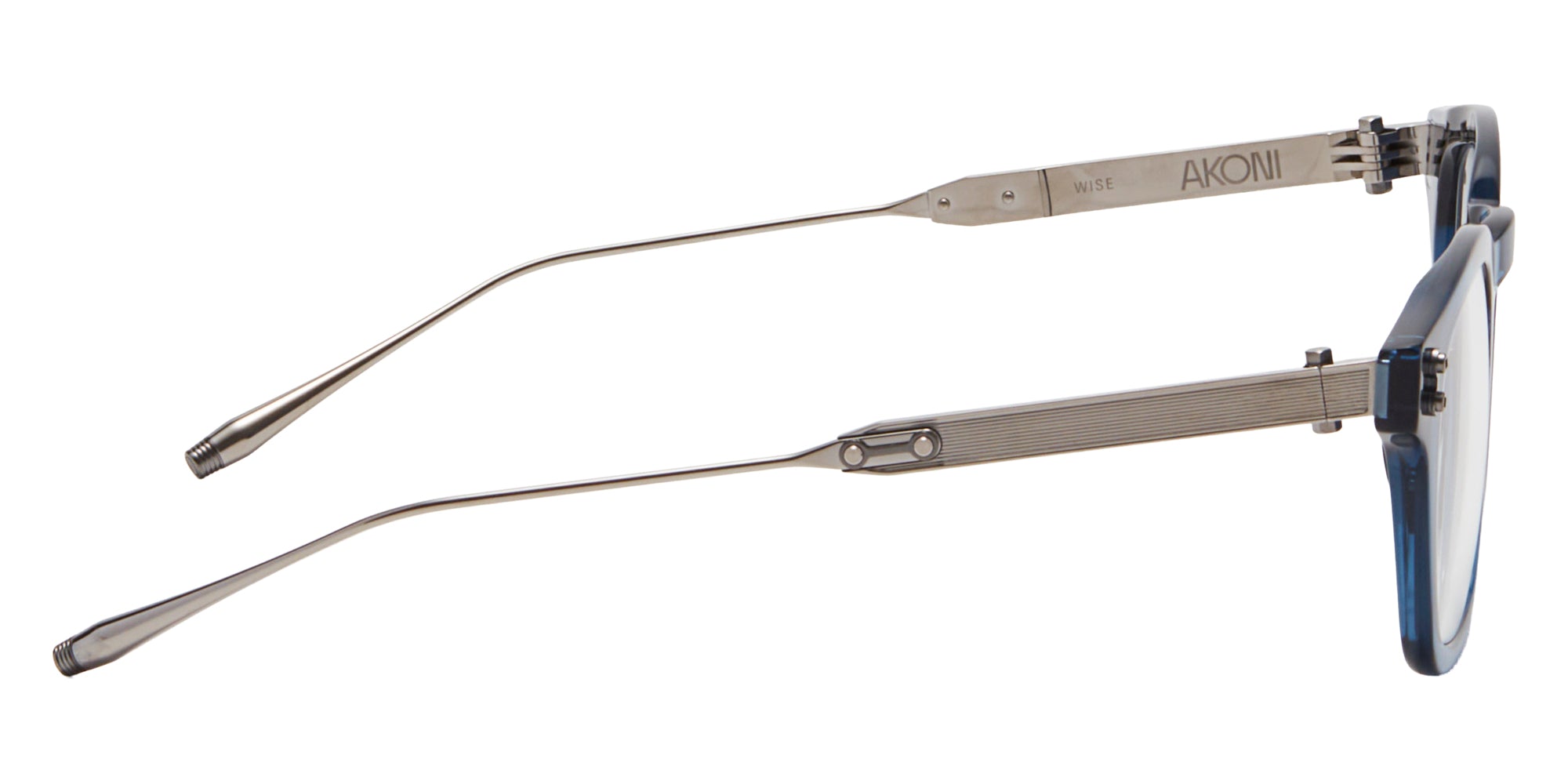 Crystal Blue/Black Palladium (418D) Eyeglasses (Wise AF 418D 45) by Akoni. Size: 45-23-145, Shape: Wayfarer, Material: Acetate and Titanium.