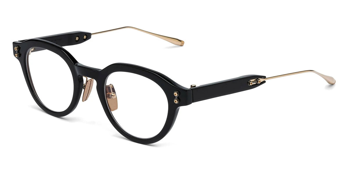 Black/12k Gold (520A) Eyeglasses (Wise Three AF 520A 46) by Akoni™. Size: 46-23-145, Shape: Wayfarer, Material: Acetate and Titanium.