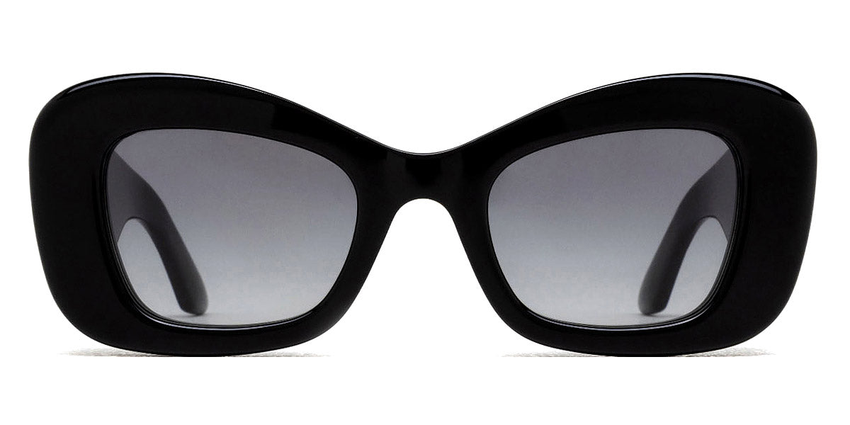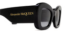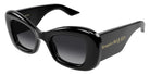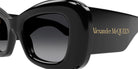 Black (001) Sunglasses with Gray Gradient lenses (AM0434S 001 50) by Alexander McQueen™. Size: 50-23-140, Shape: Cat-Eye, Material: Recycled Acetate.