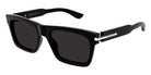 Black (001) Sunglasses with Gray lenses (AM0495S 001 55) by Alexander McQueen™. Size: 55-18-145, Shape: Square, Material: Recycled Acetate.