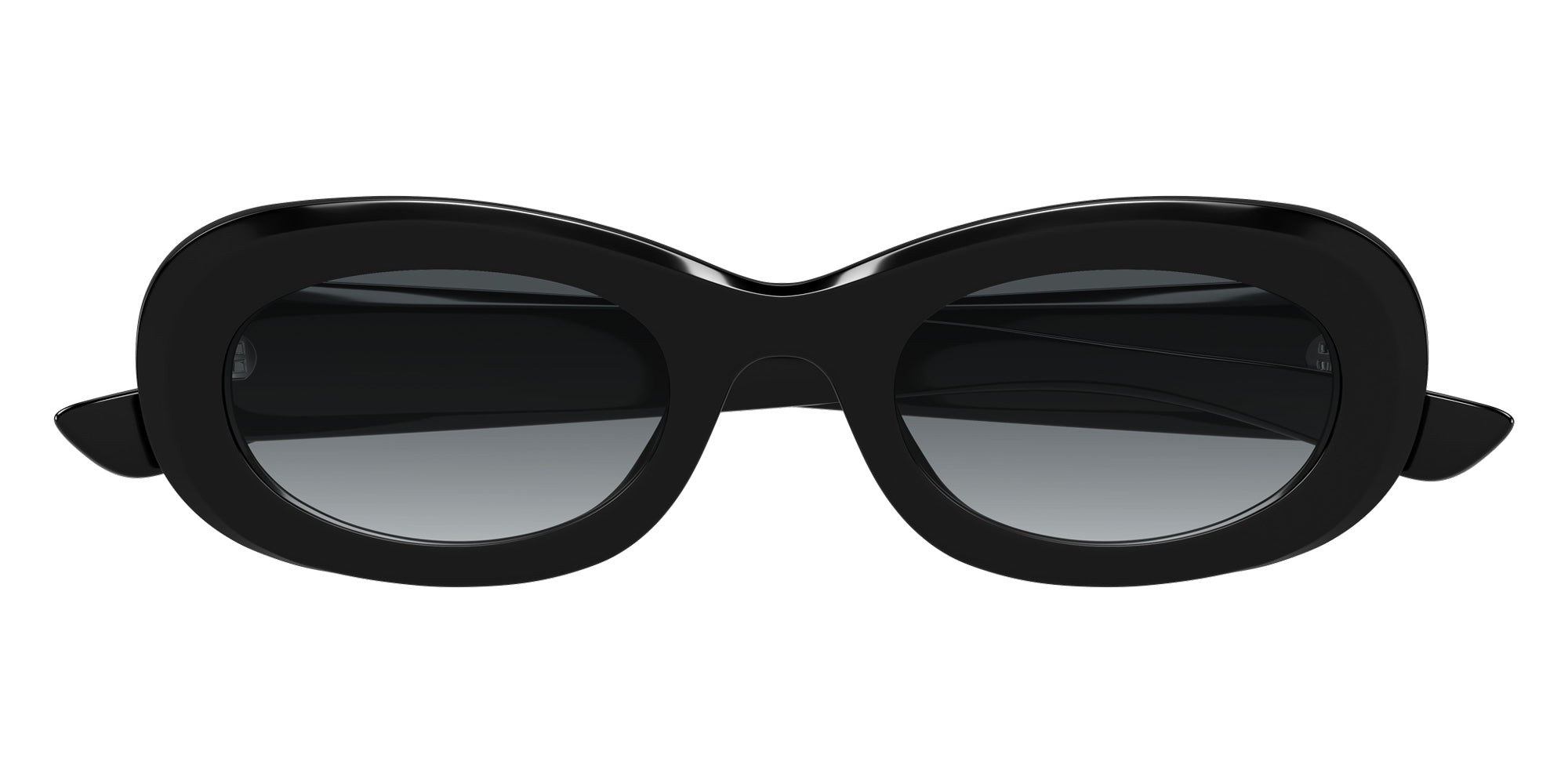 Black (001) Sunglasses (AM0527SA 001 53) by Alexander McQueen. Size: 53-22-145, Shape: Oval, Material: Recycled Acetate and Bio Injection.