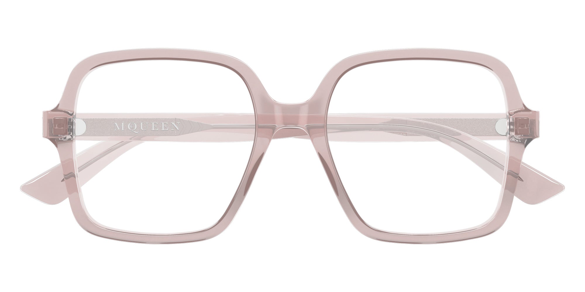 Pink (005) Eyeglasses (AM0538O 005 52) by Alexander McQueen. Size: 52-18-145, Shape: Butterfly, Material: Recycled Acetate.