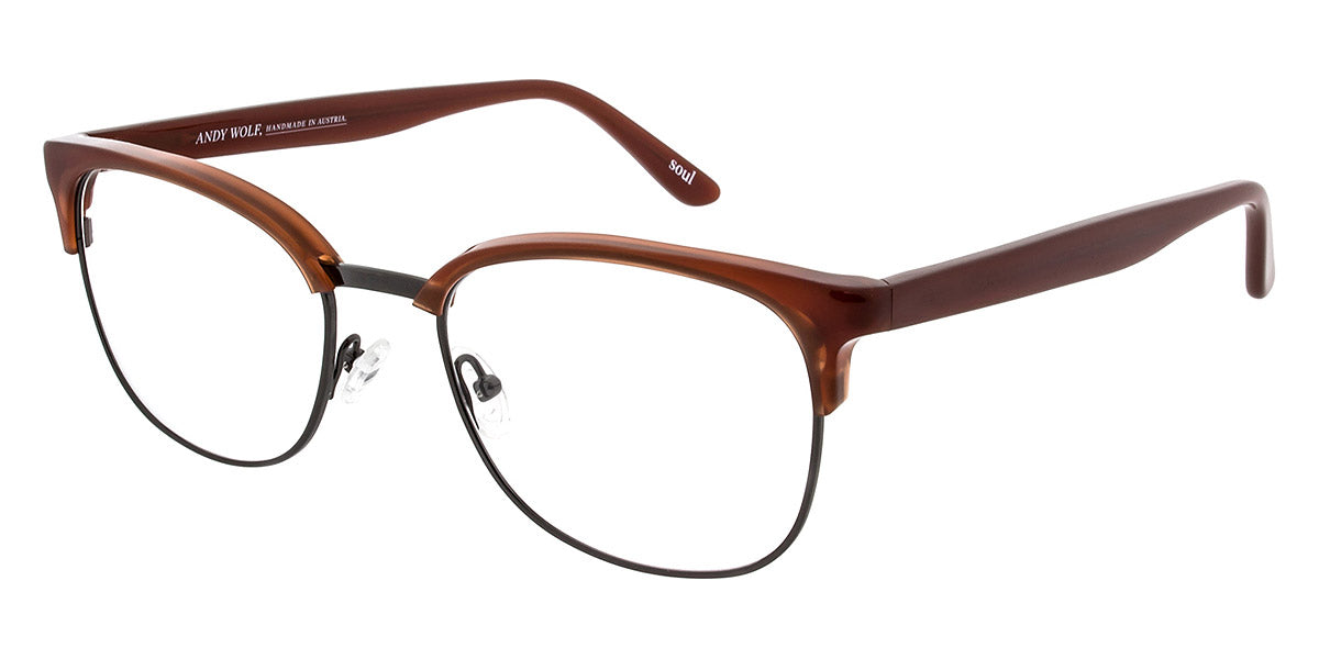 Brown (B) Eyeglasses (4544 B 53) by Andy Wolf™. Size: 53-19-140, Shape: Rectangle, Material: Acetate and Metal.
