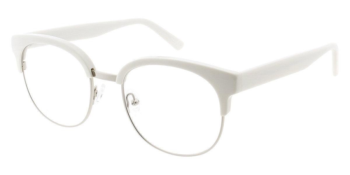 White/Silver (E) Eyeglasses (4576 E 52) by Andy Wolf™. Size: 52-20-145, Shape: Rectangle, Material: Acetate and Metal.