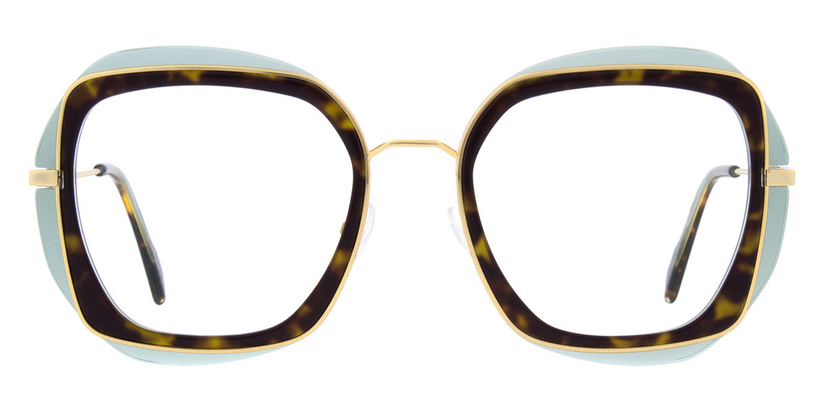 4820 Eyeglasses by Andy Wolf™. The geometric shape design feature a full rim metal frame. This model is available in four different color combinations and sizes. The Andy Wolf brand acts as a guarantor of the reliability of its products and with each new collection, it amazes the most creative fantasies of its fans. The number one material for Andy Wolf frames is cellulose acetate. The Austrians use Italian plastic because it is known to be the best in the world. For the manufacture of multilayer frames, sheets of cellulose acetate are first cut into thin long plates, then they are laid in the desired sequence, after which they are pressed again under the influence of temperature and pressure, obtaining a monolithic sheet eight mm thick at the output. This thickness allows to cut out the entire frame from the sheet and do without additionally gluing nose pads to it. Monolithic frames, on which you will never find traces of glue, are the hallmark of Andy Wolf's products. Another distinguishing feature is the absence of a logo on the frames. This is the principle position of the company, the founders believe that the focus should always be on the person, and not on his or her frame. And as customers begin to think about their own individuality and style, this philosophy seems more and more attractive to them.