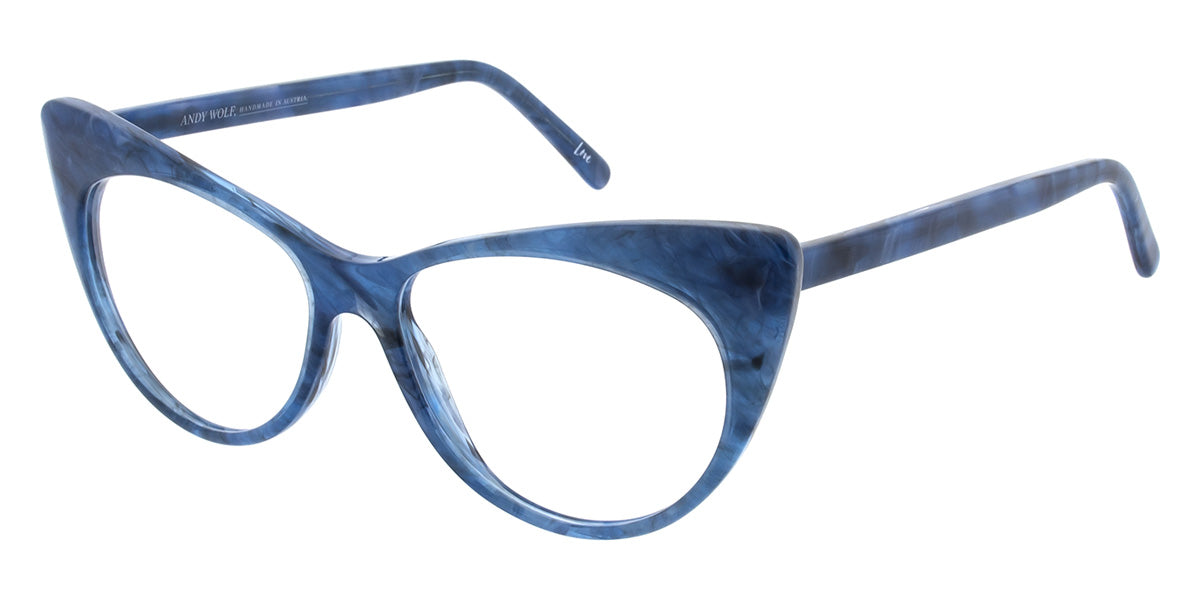 The cat-eye shape design feature a full rim acetate frame. This model is available in four different color combinations and sizes. The Andy Wolf brand acts as a guarantor of the reliability of its products and with each new collection, it amazes the most creative fantasies of its fans. The number one material for Andy Wolf frames is cellulose acetate. The Austrians use Italian plastic because it is known to be the best in the world. For the manufacture of multilayer frames, sheets of cellulose acetate are first cut into thin long plates, then they are laid in the desired sequence, after which they are pressed again under the influence of temperature and pressure, obtaining a monolithic sheet eight mm thick at the output. This thickness allows to cut out the entire frame from the sheet and do without additionally gluing nose pads to it. Monolithic frames, on which you will never find traces of glue, are the hallmark of Andy Wolf's products. Another distinguishing feature is the absence of a logo on the frames. This is the principle position of the company, the founders believe that the focus should always be on the person, and not on his or her frame. And as customers begin to think about their own individuality and style, this philosophy seems more and more attractive to them.