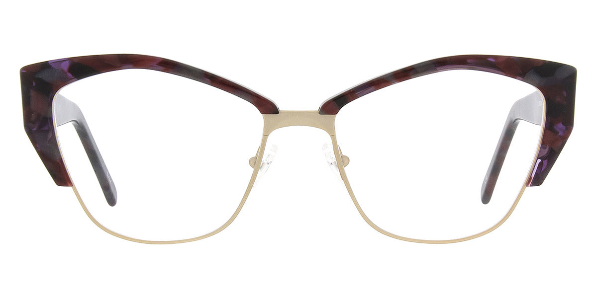 Berry/Gold (E) Eyeglasses (5093 E 56) by Andy Wolf™. Size: 56-17-140, Shape: Cat-Eye, Material: Acetate and Metal.