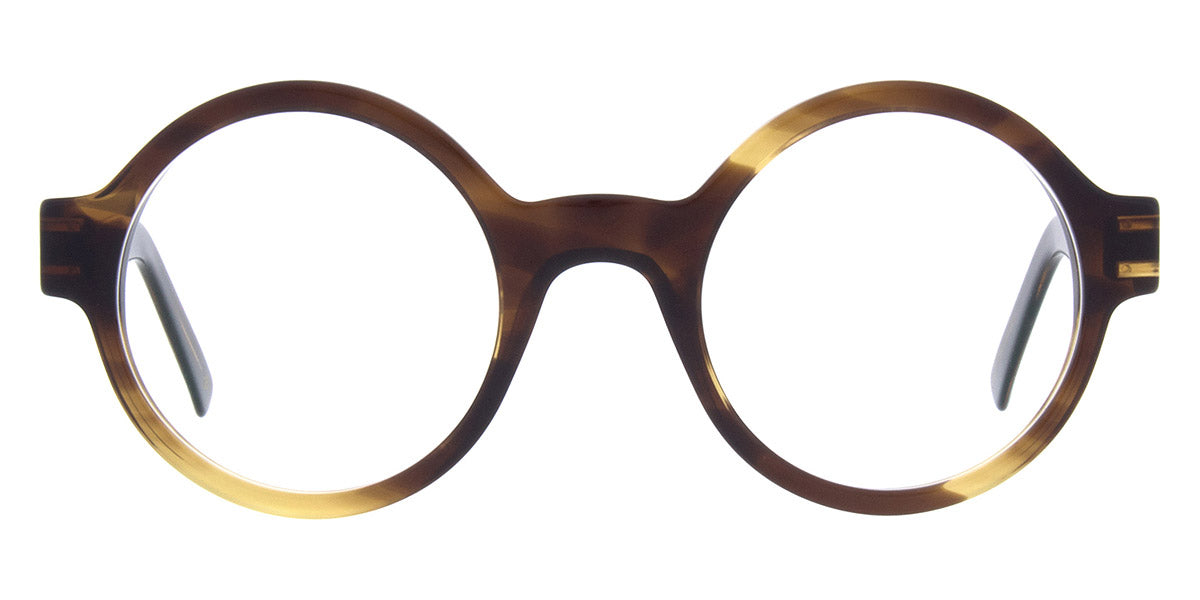 Brown/Gold (08) Eyeglasses (AW02 08 48) by Andy Wolf™. Size: 48-22-145, Shape: Round, Material: Acetate.