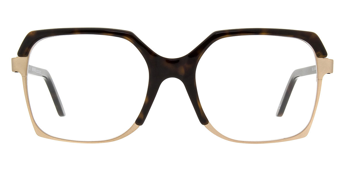 Gold/Brown (B) Eyeglasses (Belling B 55) by Andy Wolf™. Size: 55-19-140, Shape: Rectangle, Material: Acetate and Metal.