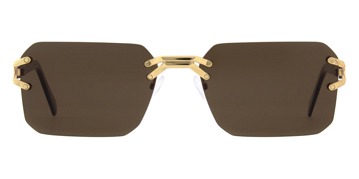 Exosat Sunglasses by Andy Wolf™. The rectangle shape design feature a rimless metal frame. This model is available in four different color combinations and sizes. The Andy Wolf brand acts as a guarantor of the reliability of its products and with each new collection, it amazes the most creative fantasies of its fans. The number one material for Andy Wolf frames is cellulose acetate. The Austrians use Italian plastic because it is known to be the best in the world. For the manufacture of multilayer frames, sheets of cellulose acetate are first cut into thin long plates, then they are laid in the desired sequence, after which they are pressed again under the influence of temperature and pressure, obtaining a monolithic sheet eight mm thick at the output. This thickness allows to cut out the entire frame from the sheet and do without additionally gluing nose pads to it. Monolithic frames, on which you will never find traces of glue, are the hallmark of Andy Wolf's products. Another distinguishing feature is the absence of a logo on the frames. This is the principle position of the company, the founders believe that the focus should always be on the person, and not on his or her frame. And as customers begin to think about their own individuality and style, this philosophy seems more and more attractive to them.