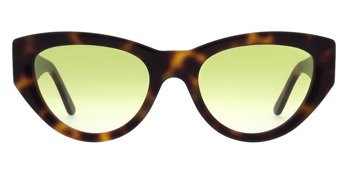 Jade Sun Sunglasses by Andy Wolf™. The cat-eye shape design feature a full rim acetate frame. This model is available in four different color combinations and sizes. The Andy Wolf brand acts as a guarantor of the reliability of its products and with each new collection, it amazes the most creative fantasies of its fans. The number one material for Andy Wolf frames is cellulose acetate. The Austrians use Italian plastic because it is known to be the best in the world. For the manufacture of multilayer frames, sheets of cellulose acetate are first cut into thin long plates, then they are laid in the desired sequence, after which they are pressed again under the influence of temperature and pressure, obtaining a monolithic sheet eight mm thick at the output. This thickness allows to cut out the entire frame from the sheet and do without additionally gluing nose pads to it. Monolithic frames, on which you will never find traces of glue, are the hallmark of Andy Wolf's products. Another distinguishing feature is the absence of a logo on the frames. This is the principle position of the company, the founders believe that the focus should always be on the person, and not on his or her frame. And as customers begin to think about their own individuality and style, this philosophy seems more and more attractive to them.