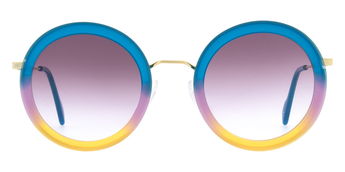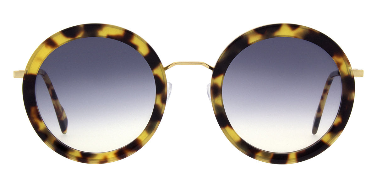 Yellow/Gold (03) Sunglasses (Liss Sun 03 50) by Andy Wolf™. Size: 50-23-145, Shape: Round, Material: Acetate and Metal.