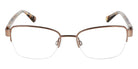 AK5093 Eyeglasses by Anne Klein™. The rectangle shape design feature a semi rimless metal frame. This model is available in six different color combinations and sizes. Anne Klein was a talented businesswoman and fashion designer who established her own company in 1968 in cooperation with Gunther Oppenheim, a guru of vogue. Her business expanded quickly, and over 750 boutiques and stores in America distributed collections of clothes with accents on the mix in warm tones of browns and neutral beiges. Nowadays, the brand produces women’s apparel, jewelry, watches, shoes, handbags, and eyewear. The optical and sun collections from Anne Klein feature bright tortoise tones, animal prints, and a variety of fashionable shapes targeted to women 35 to 55. All the glasses come in classic style with unexpected details and interesting accents.