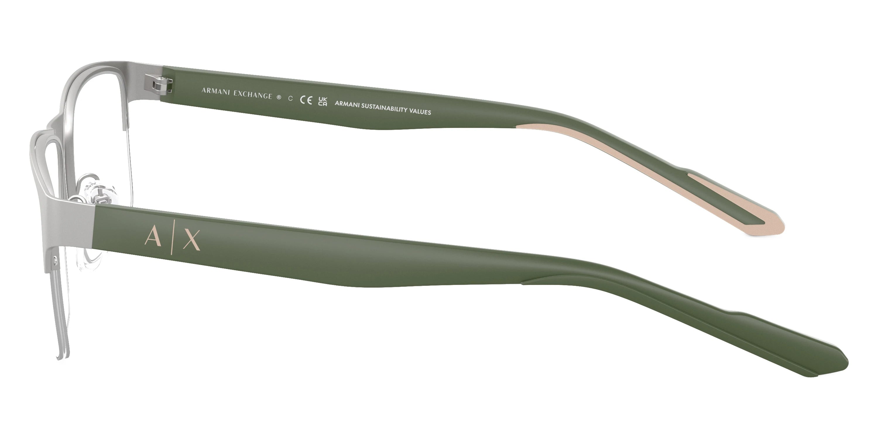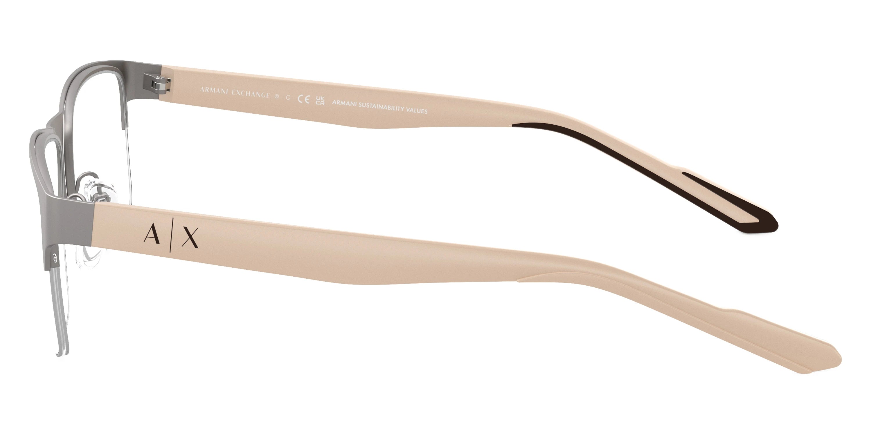 Matte Gunmetal/Matte Beige (6003) Eyeglasses (AX1068 6003 56) by ARMANI EXCHANGE™. Size: 56-18-145, Shape: Rectangle, Material: Metal and Injected.