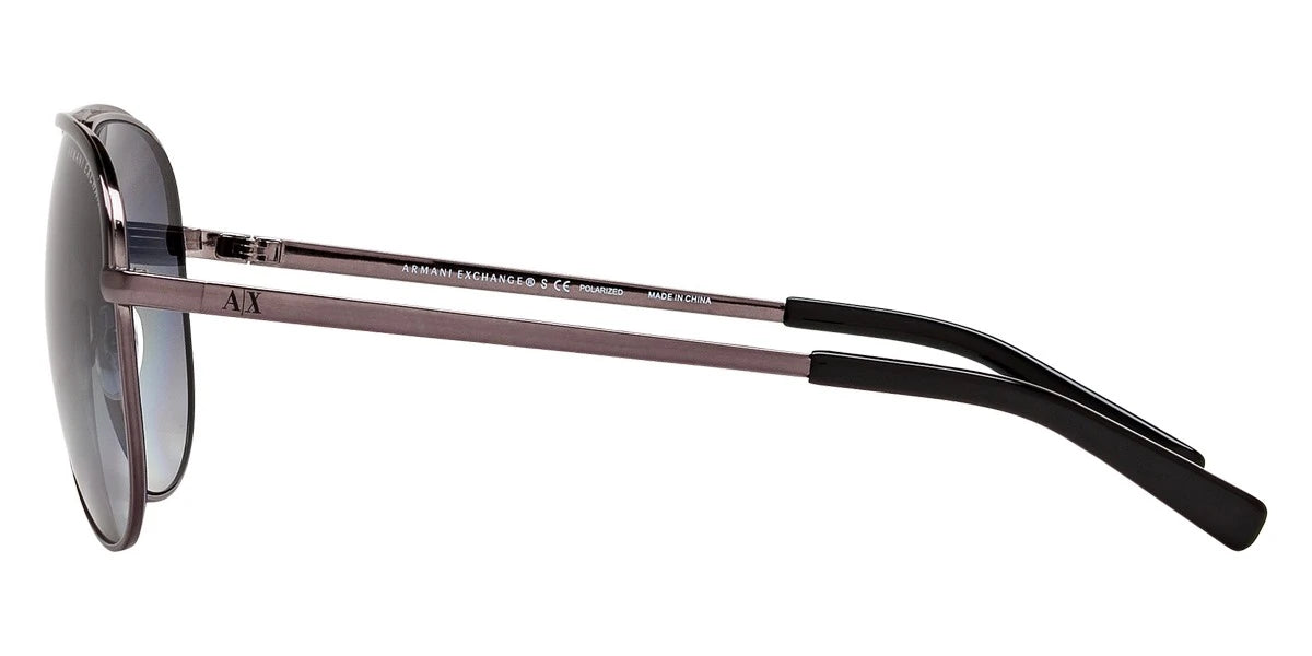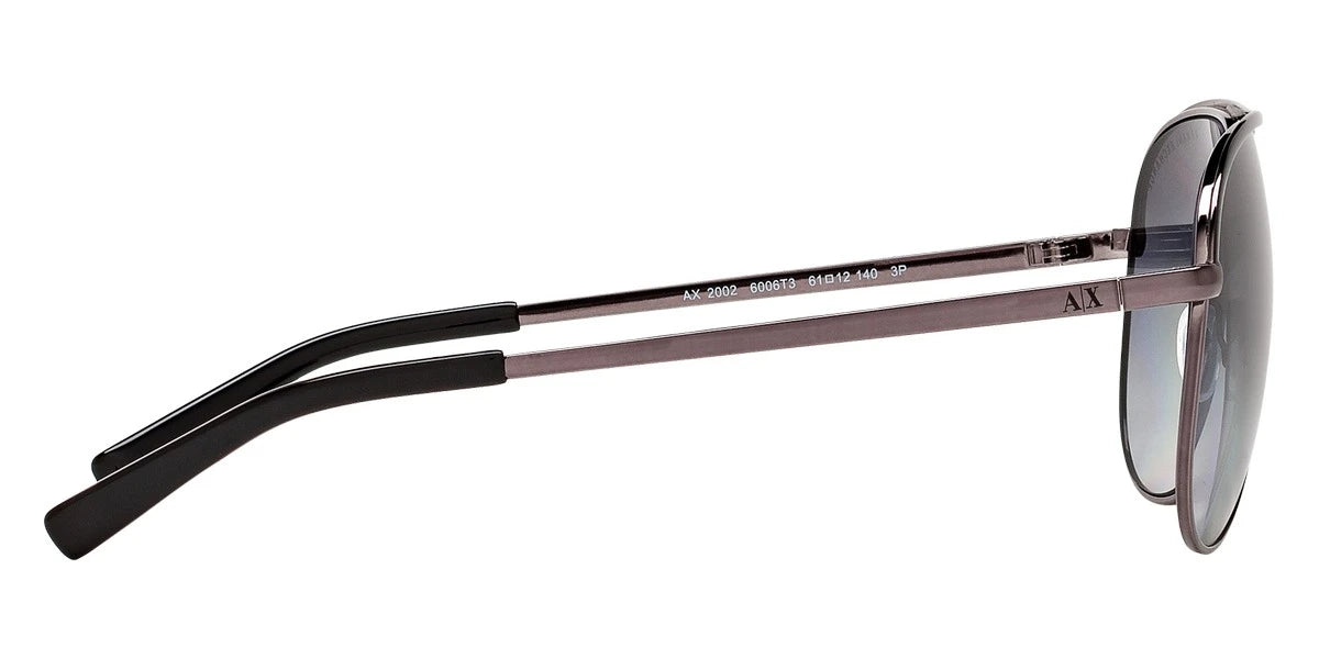 Shiny Gunmetal & Black (6006T3) Sunglasses with Gradient Gray Polarized lenses (AX2002 6006T3 61) by ARMANI EXCHANGE™. Size: 61-12-140, Shape: Aviator, Material: Metal.