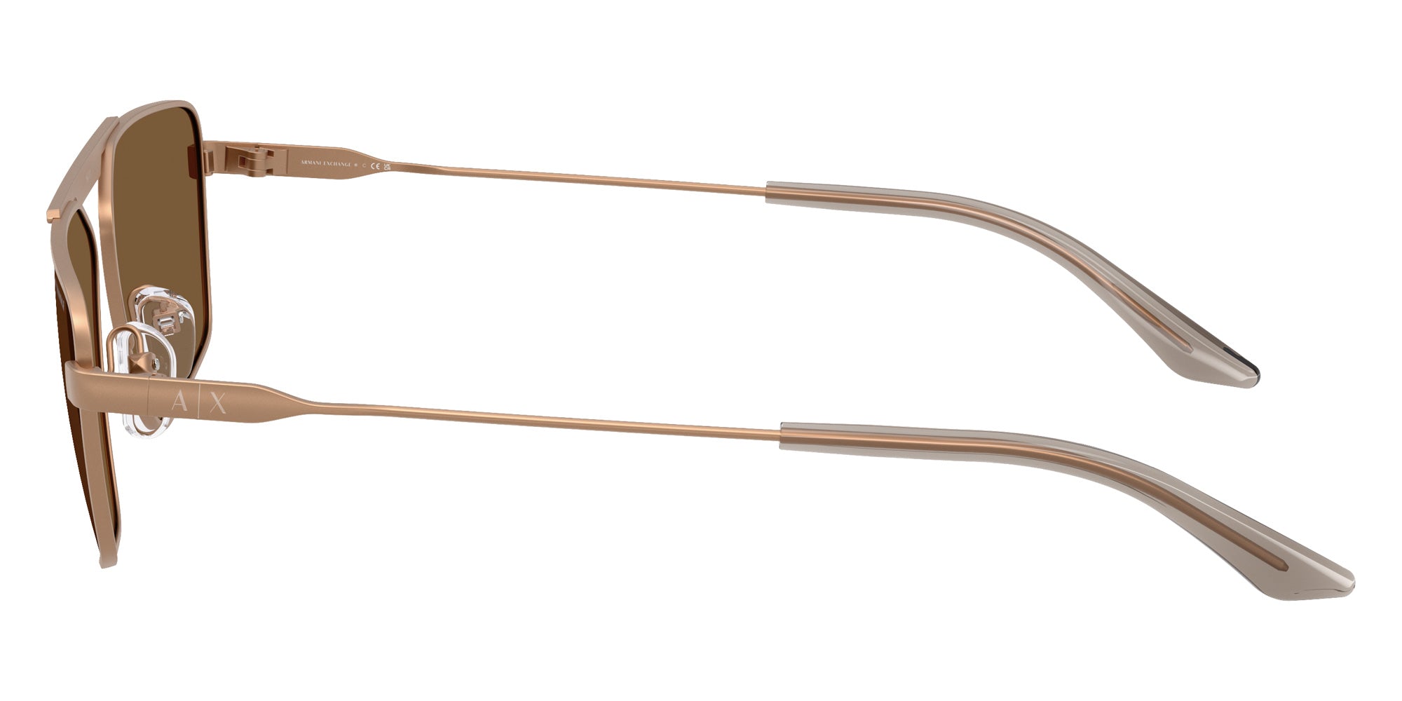 Matte Rose Gold (611473) Sunglasses with Brown lenses (AX2059S 611473 56) by ARMANI EXCHANGE. Size: 56-17-145, Shape: Irregular, Material: Metal.
