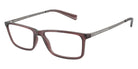 Shiny Transparent Brown/Matte Gunmetal (8011) Eyeglasses (AX3027F 8011 55) by ARMANI EXCHANGE™. Size: 55-16-140, Shape: Rectangle, Material: Injected and Metal.