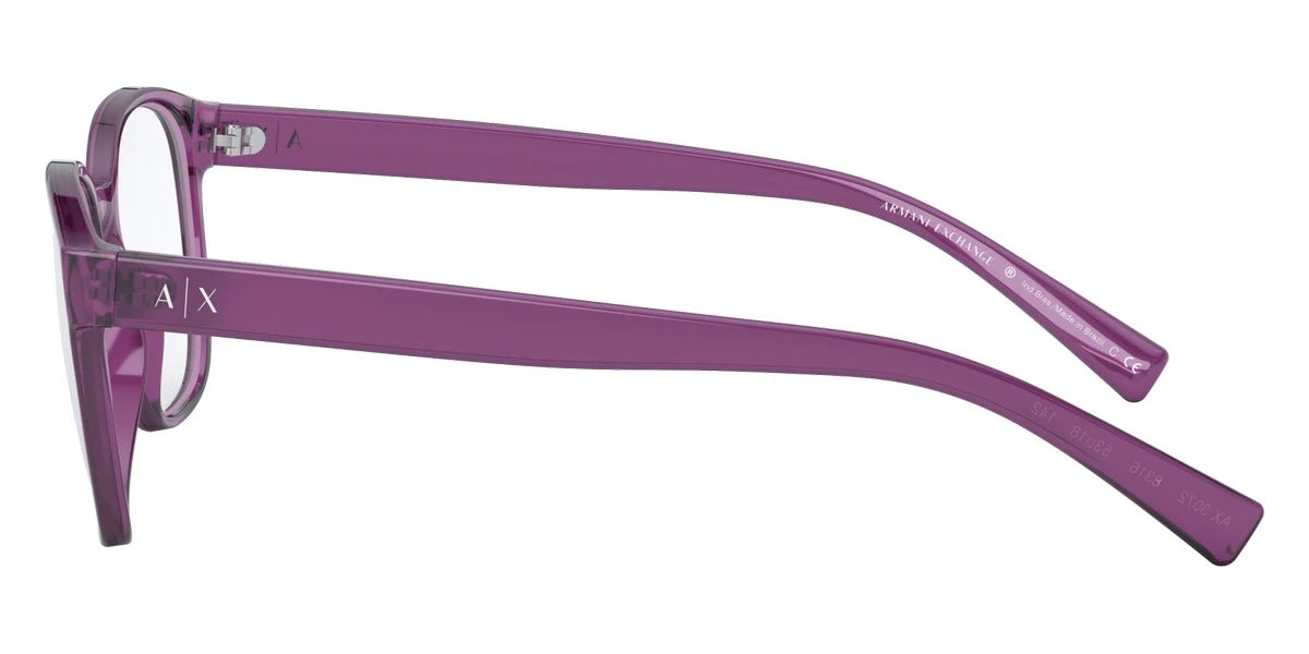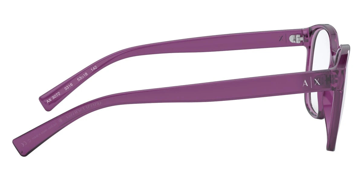 Shiny Violet (8316) Eyeglasses (AX3072 8316 53) by ARMANI EXCHANGE™. Size: 53-18-142, Shape: Rectangle, Material: Plastic.