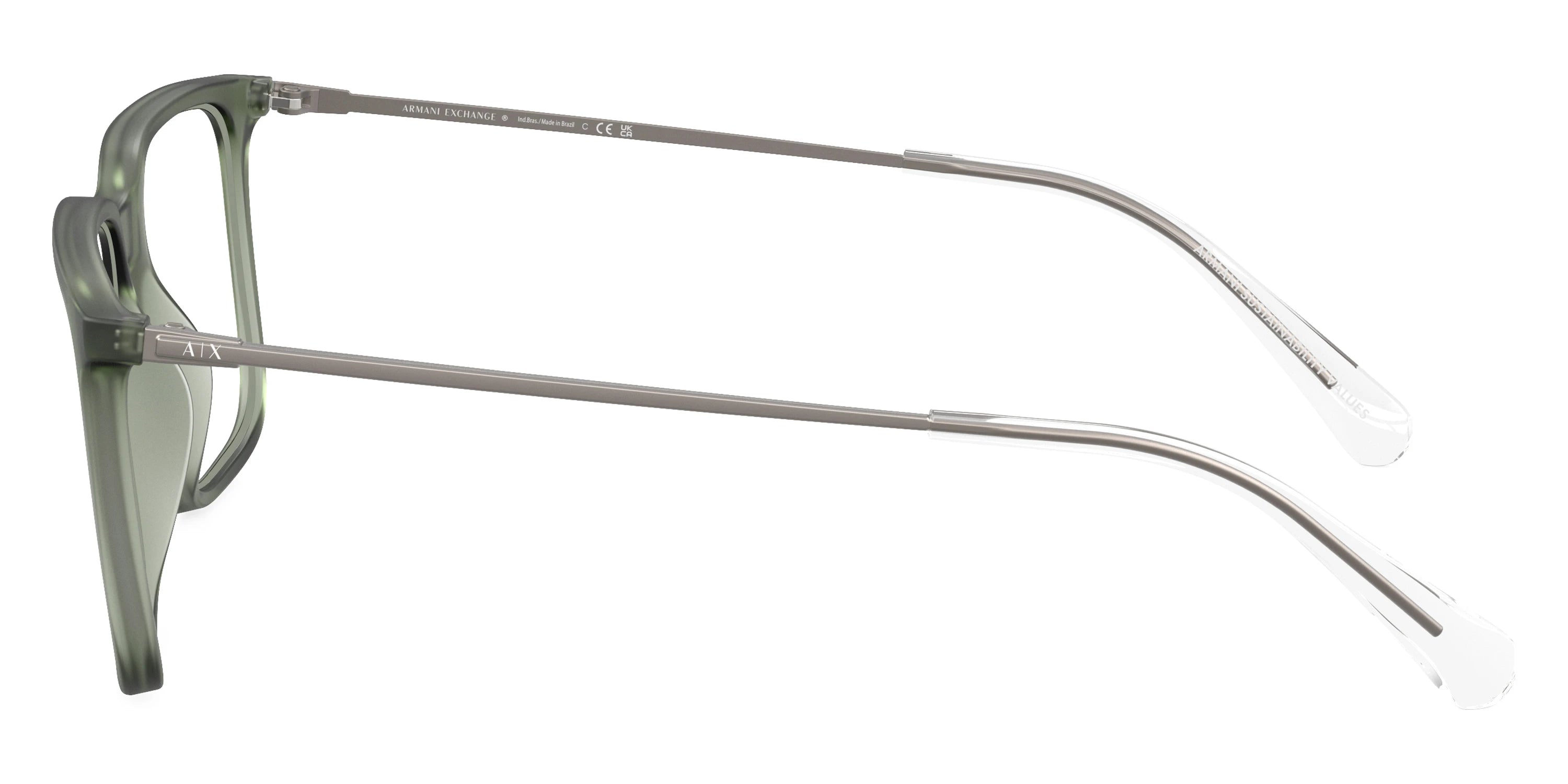 Opalescent Green/Matte Gunmetal (8362) Eyeglasses (AX3119 8362 55) by ARMANI EXCHANGE™. Size: 55-17-145, Shape: Square, Material: Injected and Metal.