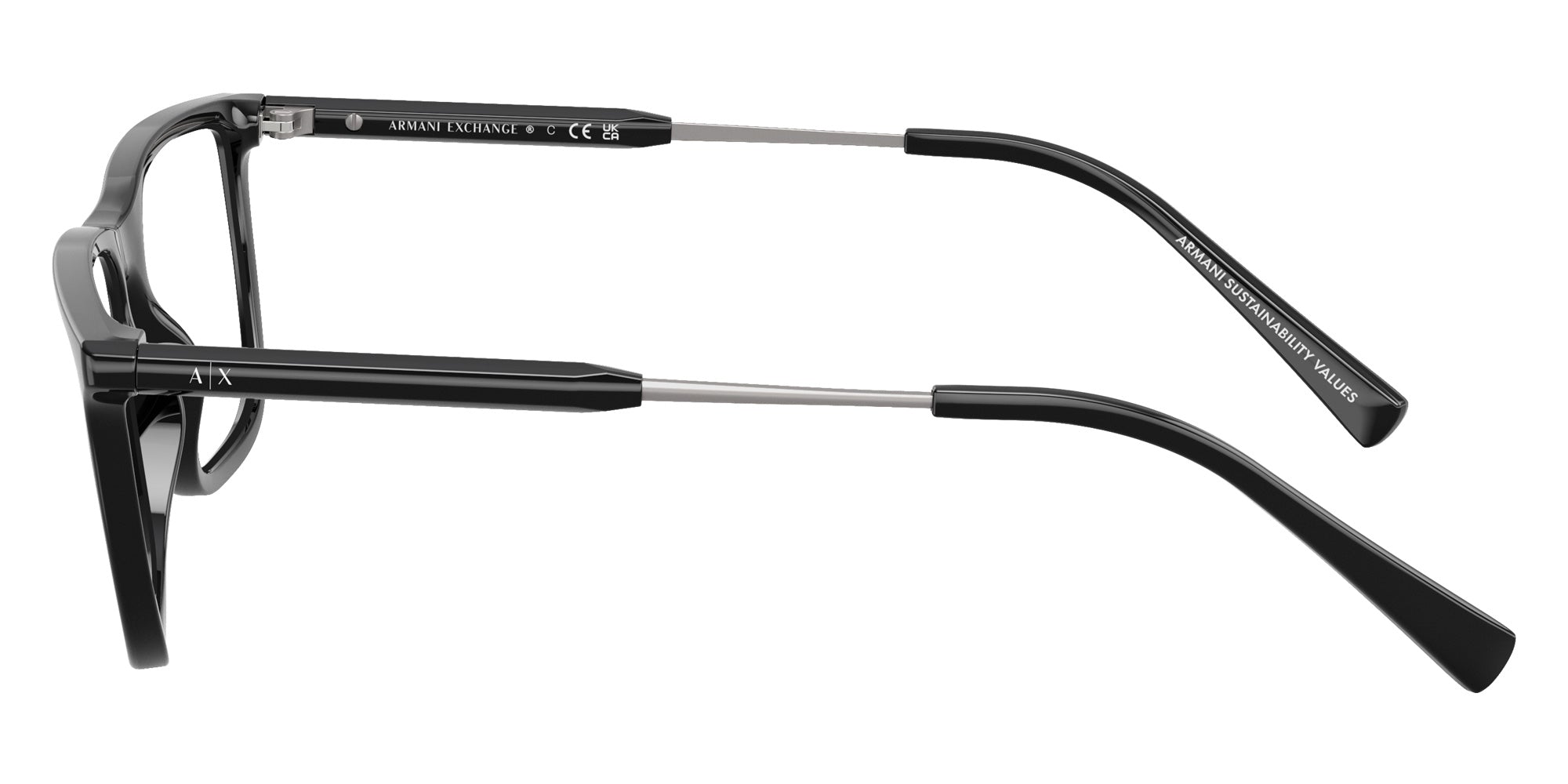 Shiny Black (8158) Eyeglasses (AX3126F 8158 54) by ARMANI EXCHANGE. Size: 54-18-145, Shape: Square, Material: Acetate and Metal.